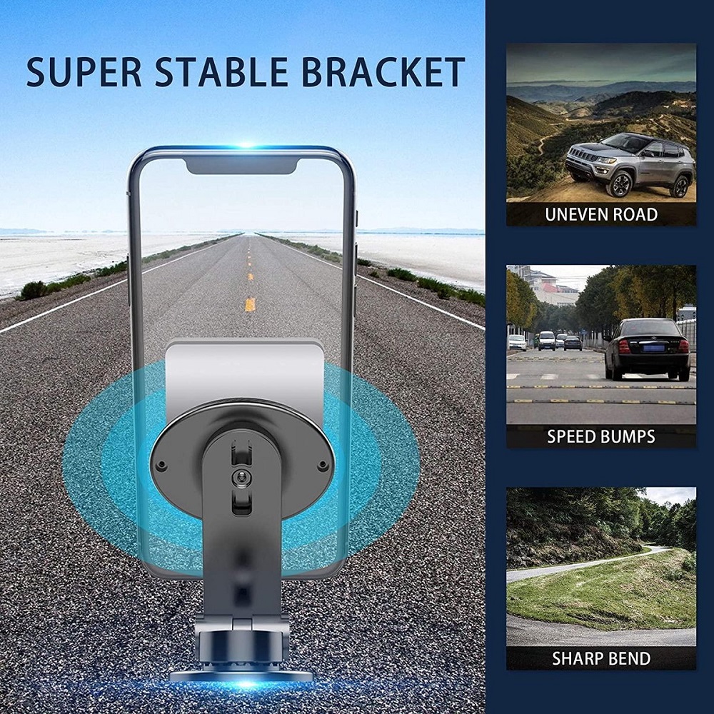 De houder heeft een sterk magnetisch aantrekkingskracht en zit stevig vast op de dashboard. Dus scherpe bochten, harde drempels en offroad wegen hebben geen invloed op de stabiliteit.