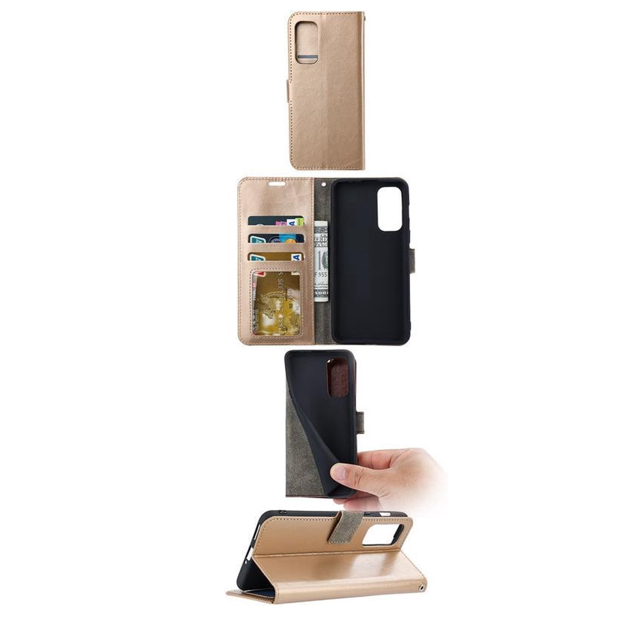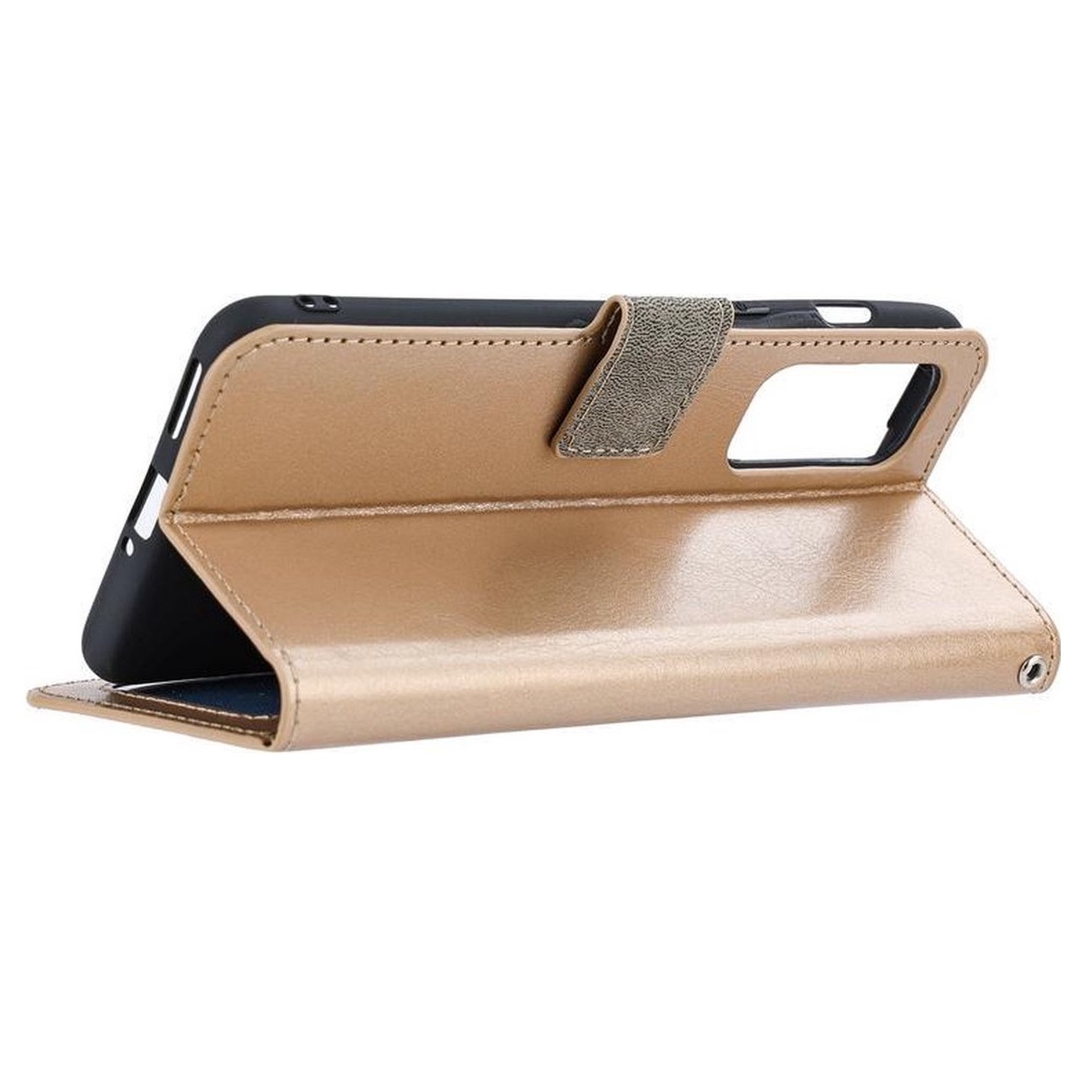 [ Portemonnee-ontwerp ] De Goud gekleurde bookcase beschikt ook over kaartvakken, waarbij u uw belangrijke kaarten in kunt plaatsen. Portemonnee en telefoonhoesje in 1.