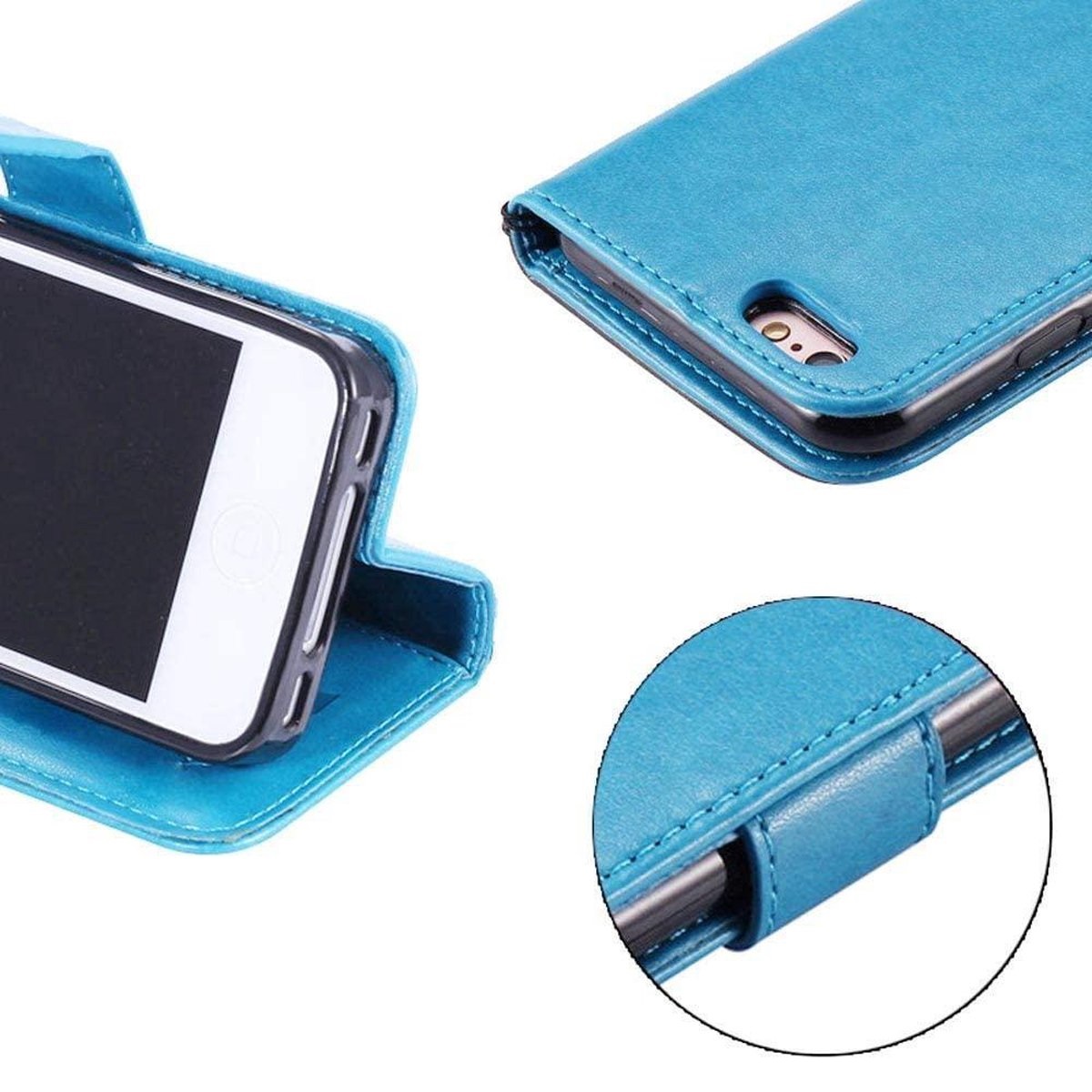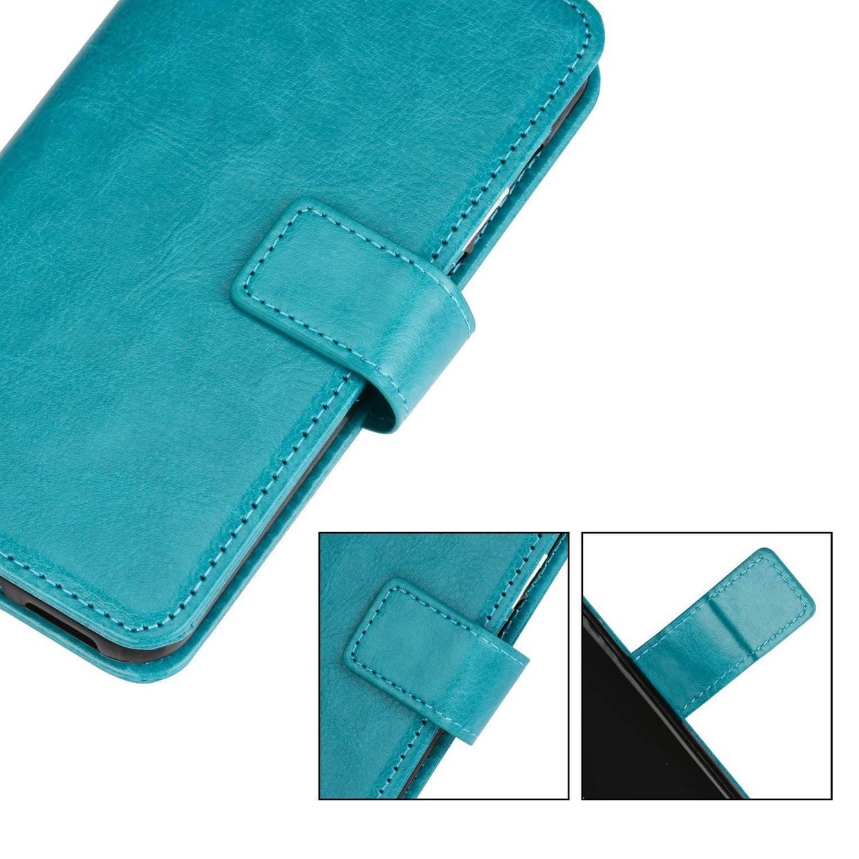 [ Portemonnee-ontwerp ] De Turquoise gekleurde bookcase beschikt ook over kaartvakken, waarbij u uw belangrijke kaarten in kunt plaatsen. Portemonnee en telefoonhoesje in 1.