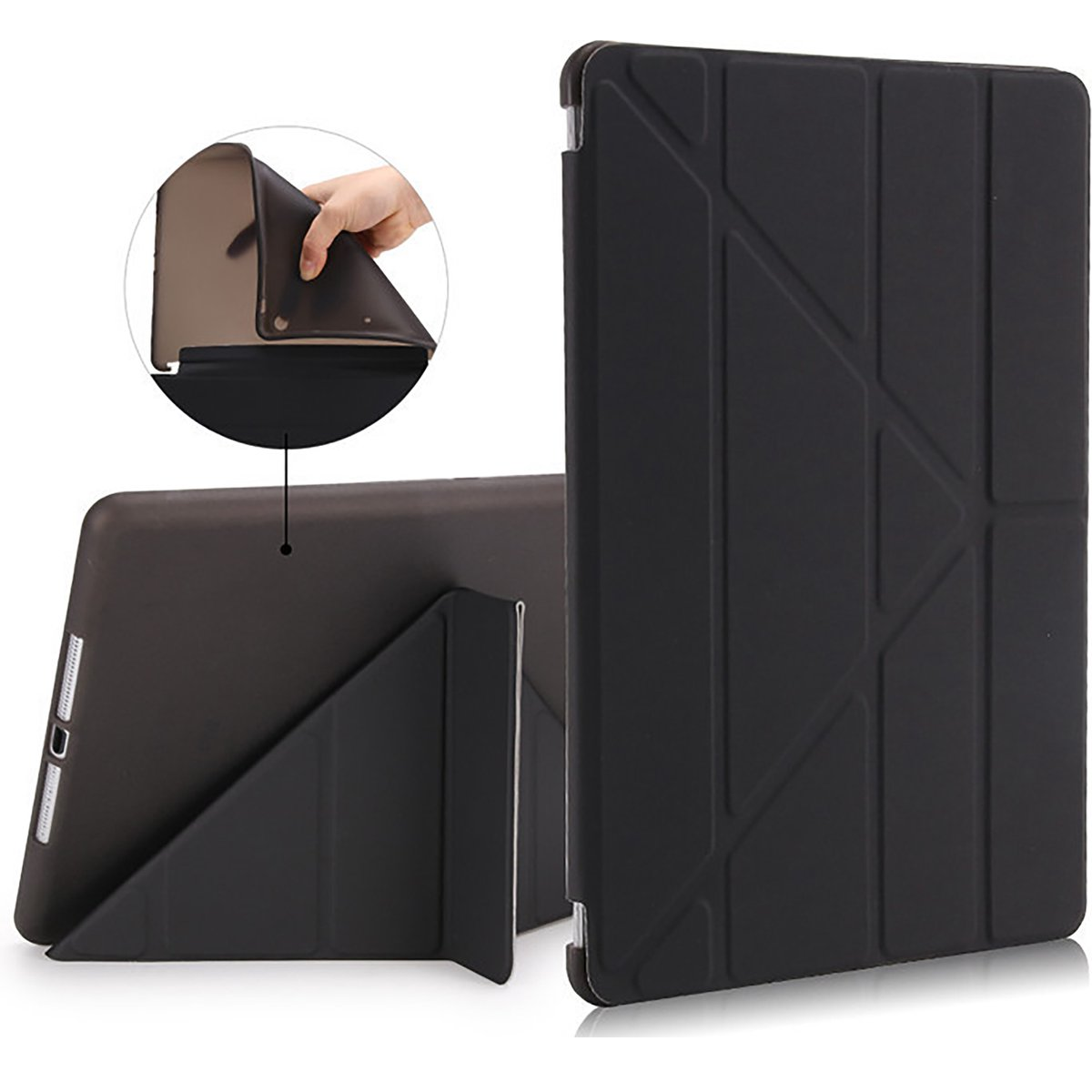 [Tri- fold] De tablet hoes kan in meerdere invalshoeken geplaatst worden zodat je je eigen perfecte perspectief creëert om ideaal een film of serie te kijken.