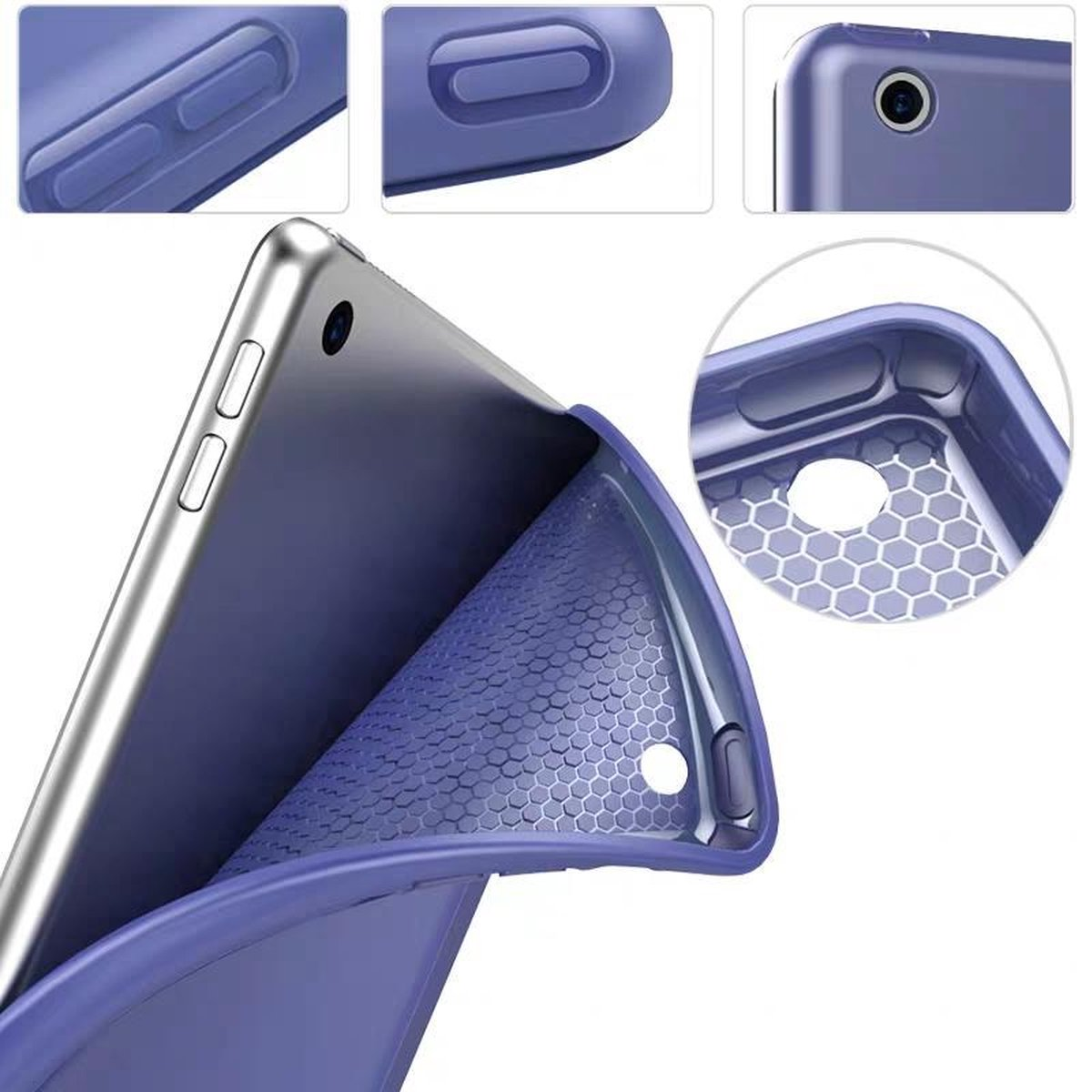 [Tri- fold] De tablet hoes kan in meerdere invalshoeken geplaatst worden zodat je je eigen perfecte perspectief creëert om ideaal een film of serie te kijken.