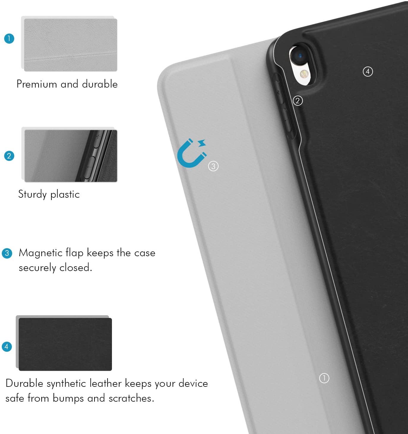 [Volledige Bescherming] Het slijtvaste kunstleer, antislip en de rubberen binnenschaal bieden de beste bescherming aan uw Apple iPad Pro 11 2020 / 2018. De zachte achterkant van TPU uw Apple iPad Pro 11 2020 / 2018 tegen stoten en valpartijen.