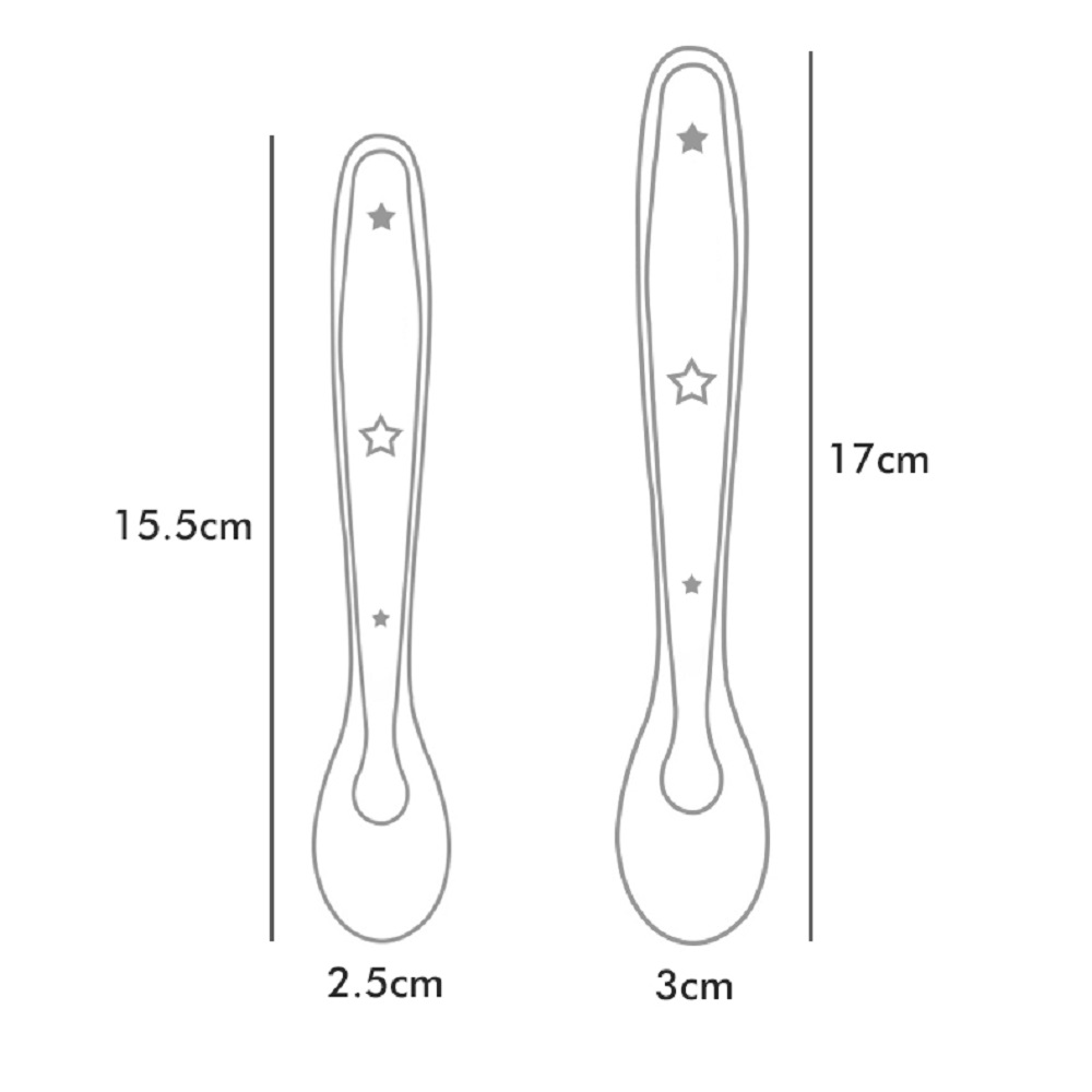 De bestekset bestaat uit twee lepels en een houder waar je het bestek in kan opbergen. Dit komt zeer goed van pas voor wanneer je het bestek mee wilt nemen. Hierdoor voorkom je ten eerste dat je het bestek kwijt raakt. Ten tweede is en belangrijkste voorkom je dat het bestek onhygienisch wordt. Gemaakt van zachte flexibele siliconen wat zeer geschikt is peuters en het gebit. Je wilt namelijk niet dat je baby op harde kunstof bijt. Alle bestekken zijn gemaakt van mooi afgewerk materiaal waardoor het aantrekkelijk uit ziet