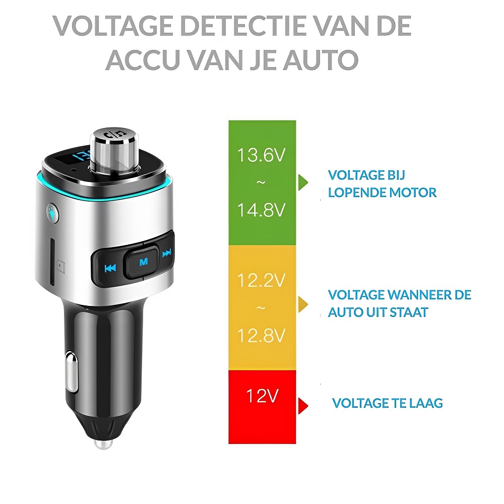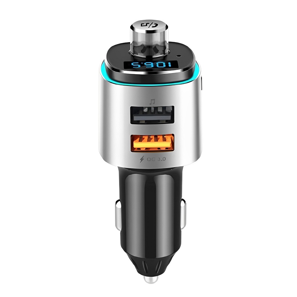 Deze Transmitter is universeel in ontwerp en is daarom geschikt voor elke auto. Het is voorzien van 2 USB aansluitpoorten. De ene USB aansluiting is bedoeld om je smartphone mee te kunnen opladen met een vermogen van QC3.0 max. De tweede is bedoeld voor mediaoverdracht met een maximale geheugencapaciteit van 32GB. Dit geldt ook voor de Micro SD kaart aansluiting waarin je de geheugenkaart (met maximaal 32GB) kan installeren. De FM-Transmitter is voorzien van een ingebouwde microfoon. Ook heeft het een extra Bass Booster knop waarmee je de Bass kan reguleren. De Transmitter werkt veilig en is CE, FCC, en RoHS gecertificeerd.