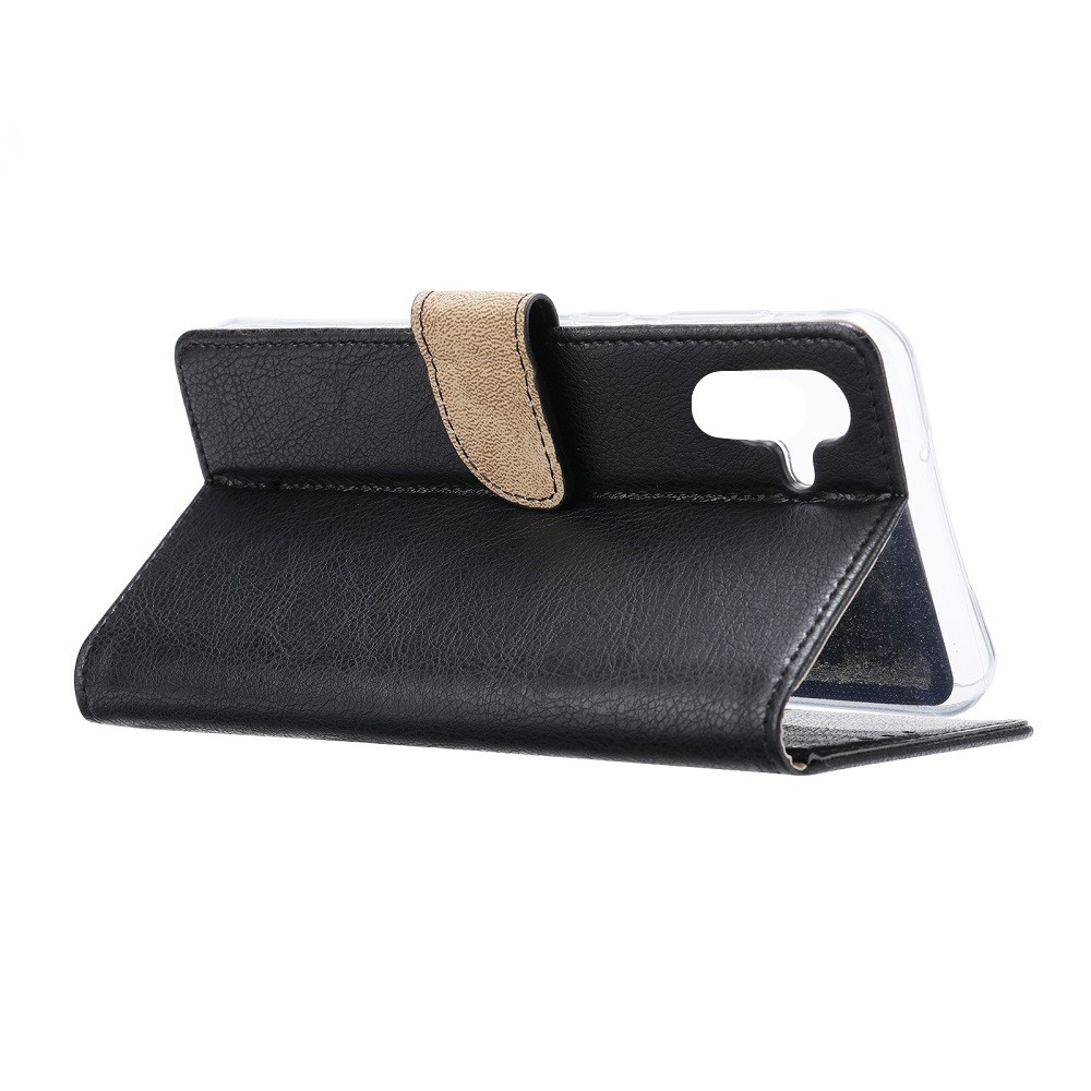 [ Portemonnee-ontwerp ] De Zwart gekleurde bookcase beschikt ook over kaartvakken, waarbij u uw belangrijke kaarten in kunt plaatsen. Portemonnee en telefoonhoesje in 1.