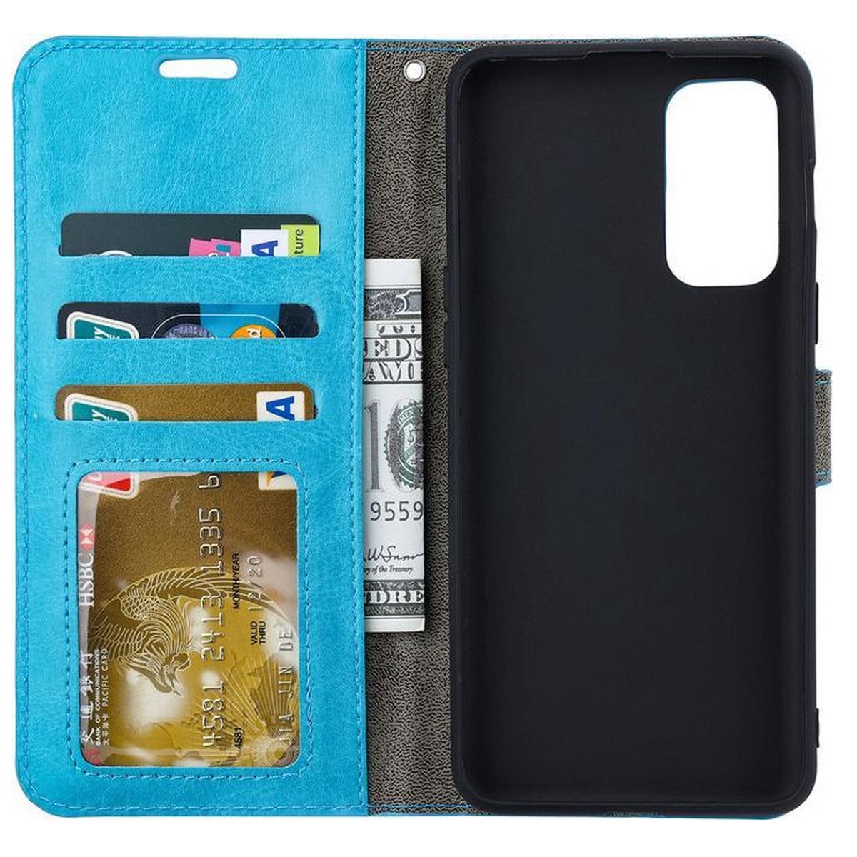 [Portemonnee-ontwerp] De Turquoise gekleurde bookcase beschikt ook over kaartvakken, waarbij u uw belangrijke kaarten in kunt plaatsen. Portemonnee en telefoonhoesje in 1.