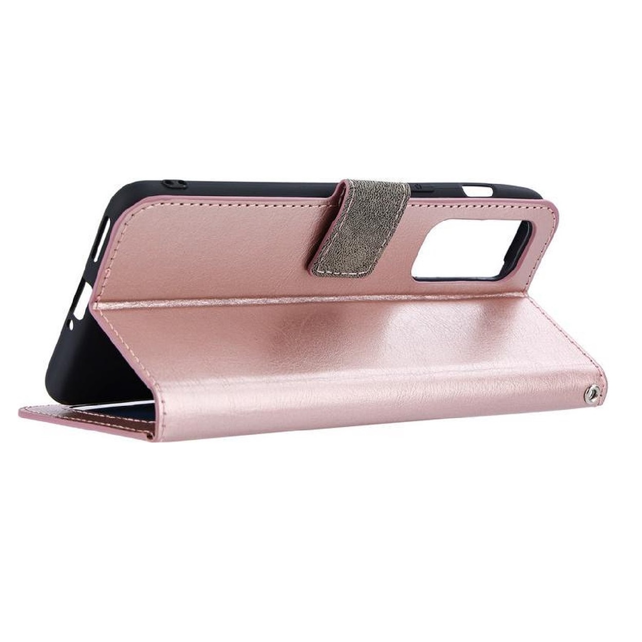 [Portemonnee-ontwerp] De Rosegoud gekleurde bookcase beschikt ook over kaartvakken, waarbij u uw belangrijke kaarten in kunt plaatsen. Portemonnee en telefoonhoesje in 1.
