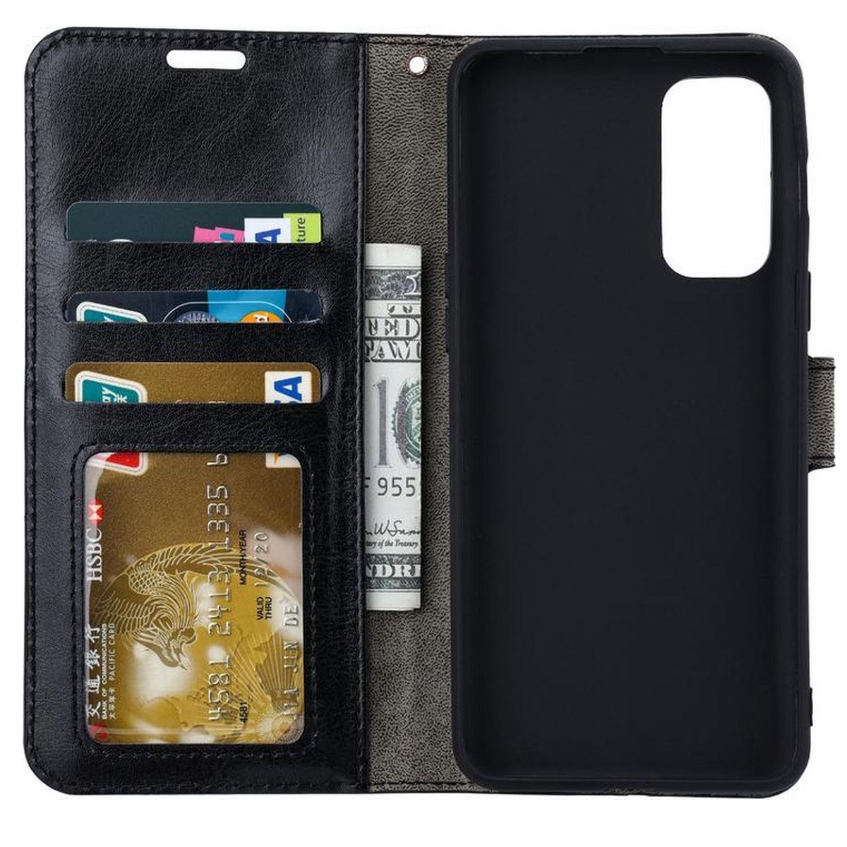 [Portemonnee-ontwerp] De Zwart gekleurde bookcase beschikt ook over kaartvakken, waarbij u uw belangrijke kaarten in kunt plaatsen. Portemonnee en telefoonhoesje in 1.