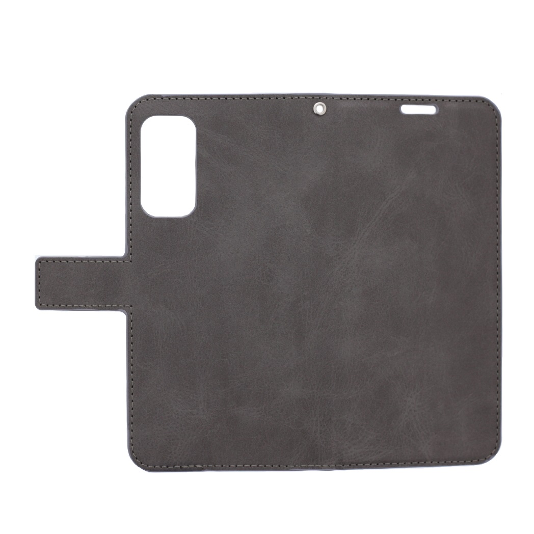 [Portemonnee-ontwerp] De grijs gekleurde bookcase beschikt ook over kaartvakken, waarbij u uw belangrijke kaarten in kunt plaatsen. Portemonnee en telefoonhoesje in 1.