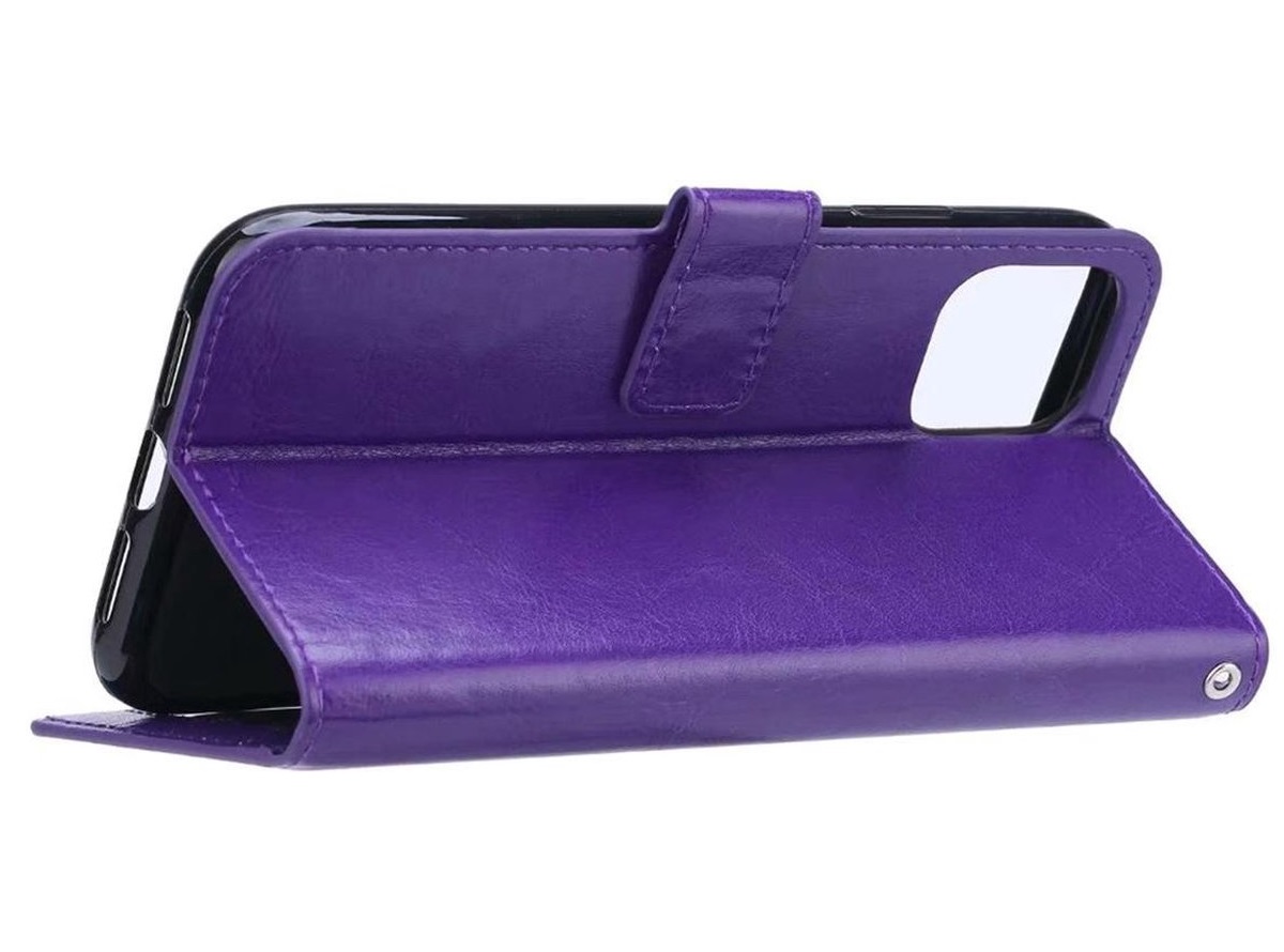 [Portemonnee-ontwerp] De Paars gekleurde bookcase beschikt ook over kaartvakken, waarbij u uw belangrijke kaarten in kunt plaatsen. Portemonnee en telefoonhoesje in 1.