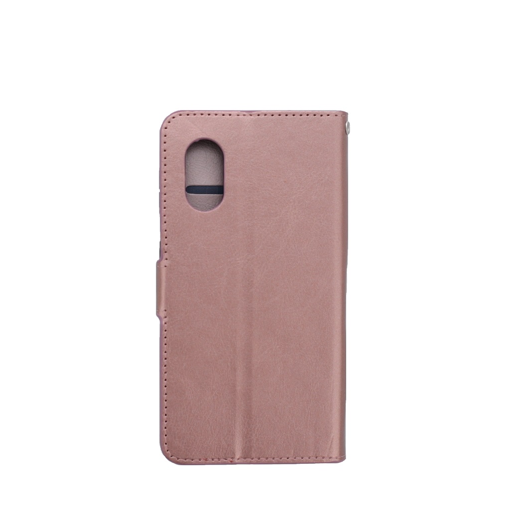 [Portemonnee-ontwerp] De rosegoud gekleurde bookcase beschikt ook over kaartvakken, waarbij u uw belangrijke kaarten in kunt plaatsen. Portemonnee en telefoonhoesje in 1.