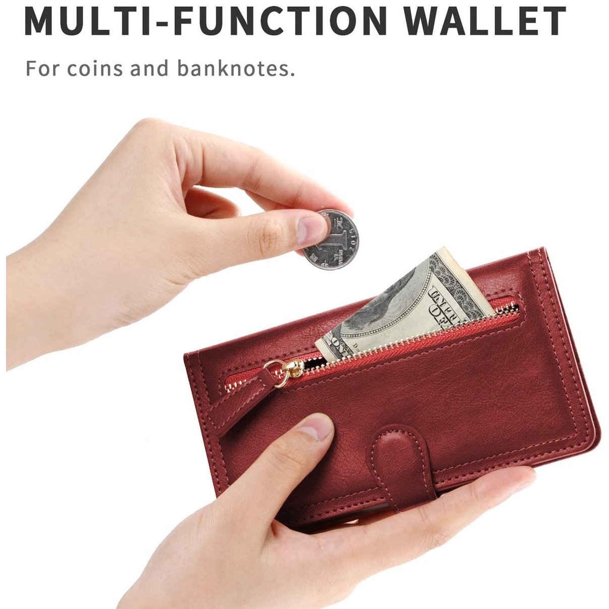 [ Portemonnee-ontwerp ] De Rood gekleurde bookcase beschikt ook over kaartvakken, waarbij u uw belangrijke kaarten in kunt plaatsen. Portemonnee en telefoonhoesje in 1.