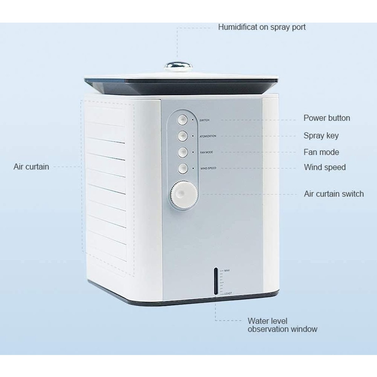 Verneveling en bevochtiging: verwijder uitdroging en voeg vocht toe. Effectief als aanvulling op de vochtigheid van de lucht, ontdoe u van de droge en zinderende zomer, zodat u de zomer verfrissend en comfortabel kunt doorbrengen.