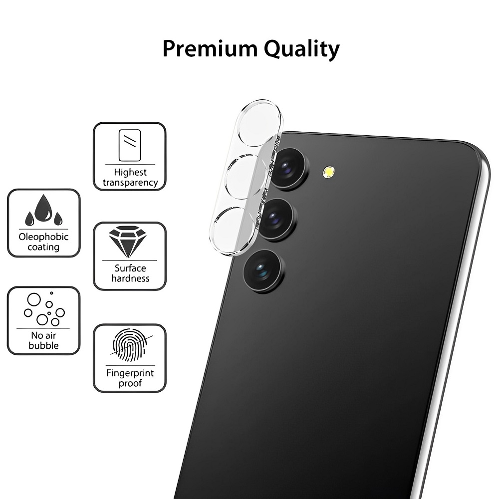 De Samsung Galaxy S23+ camera protector biedt een VOLLEDIG bescherming voor de cameraframe. De meeste cameraprotectors bieden alleen een bescherming aan voor de cameraframe en niet de lens. Bij ons is dit niet geval juist omdat de cameraprotector bedoeld is om met name de lens te beschermen. De cameraprotector is gemakkelijk binnen enkele seconden te installeren en is van premium kwaliteit gemaakt. Dit wilt zeggen dat de lens geen enkel negatief invloed heeft op de kwaliteit van je foto’s en video’s. Daarnaast is de flitser voorzien van een lichte zwarte randje. Dit is bedoeld om te voorkomen dat het flitslicht in de cameraprotector schijnt waardoor je een gloeilamp effect krijgt. Kortom, de cameraprotector heeft de volgende voordelen:
