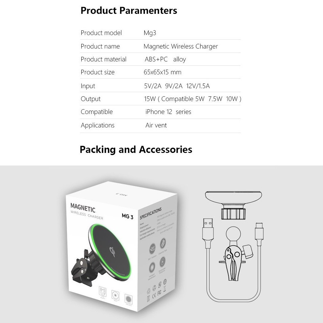 Draadloos Magnetisch Autolader Autohouder | Universeel Telefoonhouder met 15W Fastcharge Draadloze oplader – LB641
