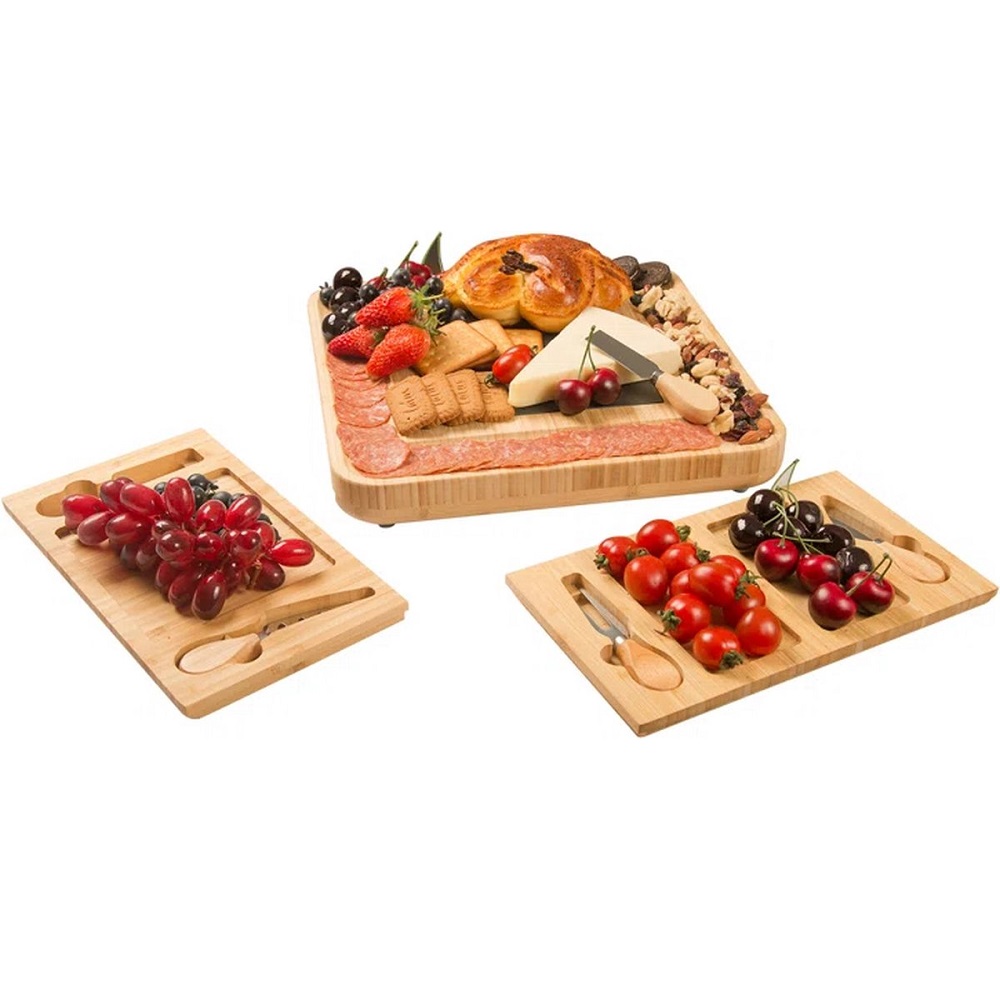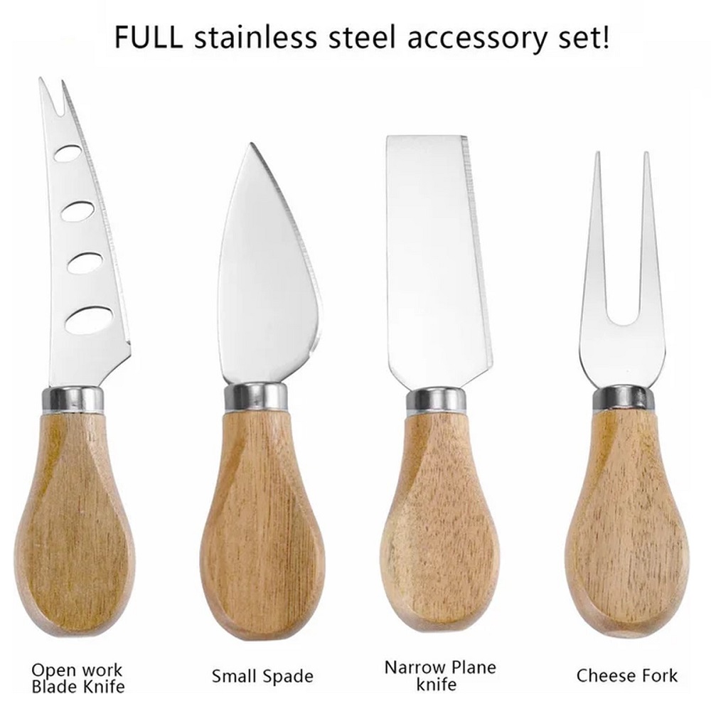 [Bestekset] De driedelige borrelplank is voorzien van een bestekset die je kan gebruiken om de hapjes voor te bereiden voor de gasten.