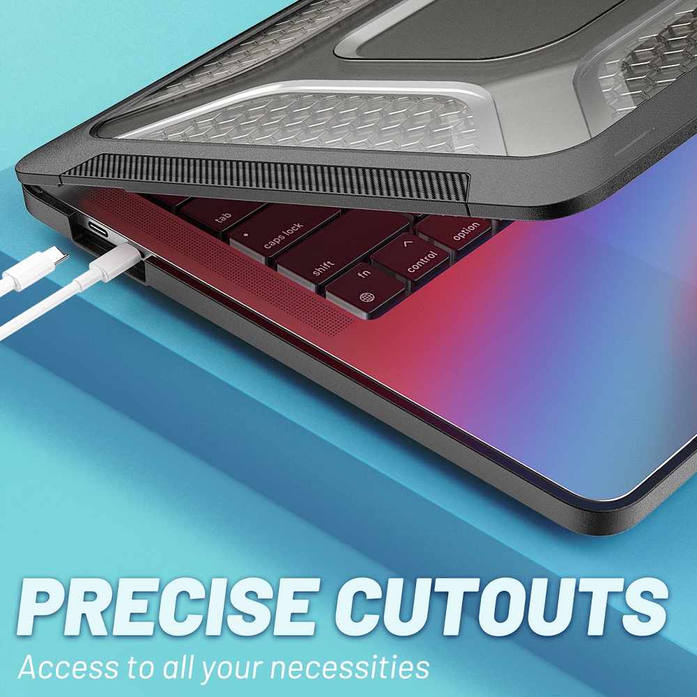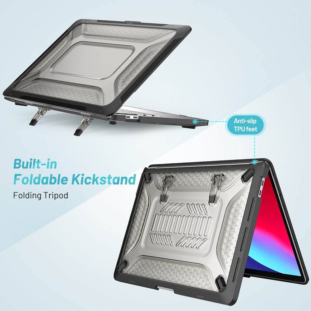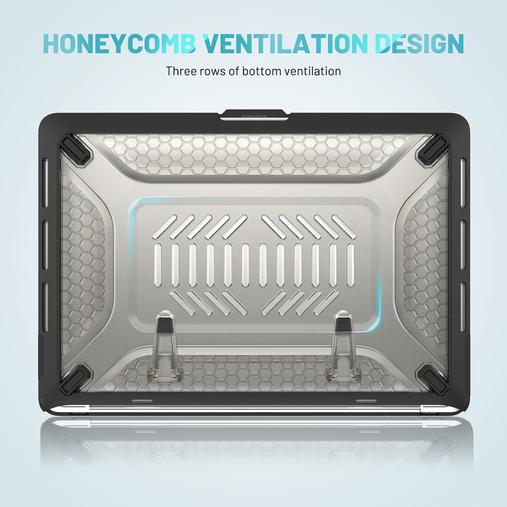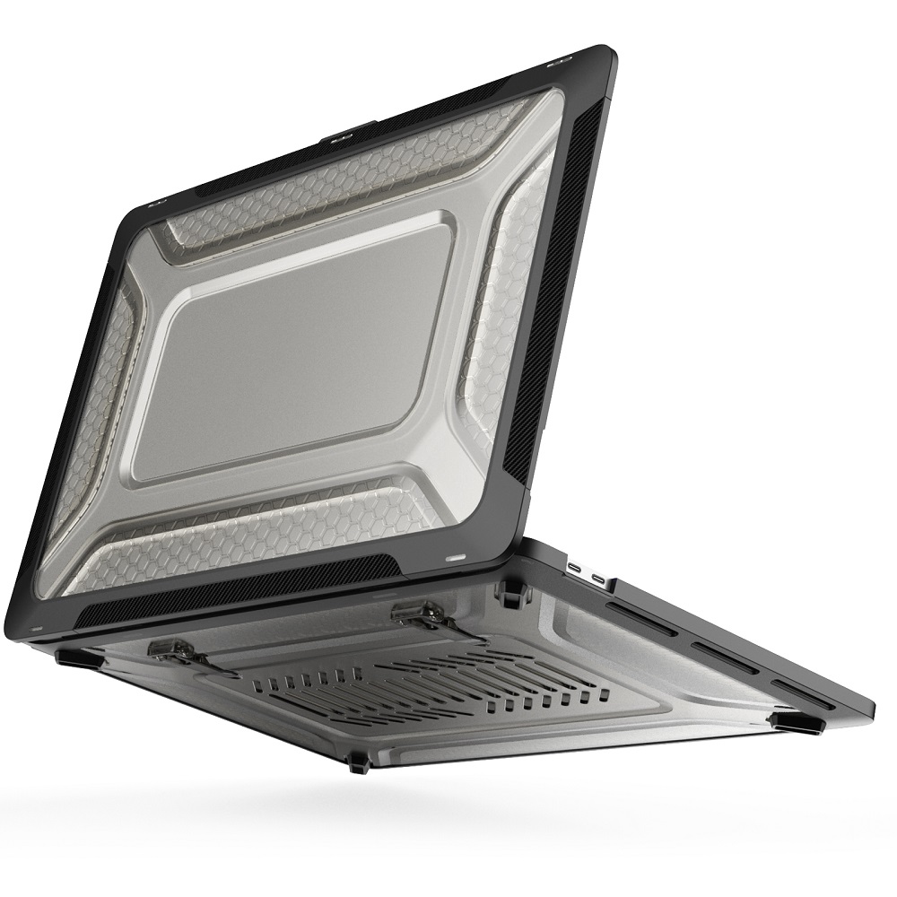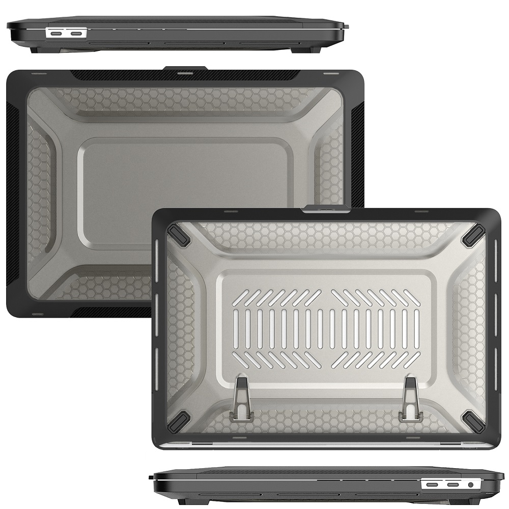 Met de transparante hardcase cover met zwarte randen ben je verzekerd van een goede bescherming voor de Apple Macbook Pro 16 inch uit 2019. De flexibele materialen bieden een stevige pasvorm die geen van de knoppen, poorten of andere onderdelen bedekt of blokkeert. De cover is licht van gewicht en stevig genoeg om jou Macbook tegen beschadigingen te beschermen tijdens transport. De transparante hardcase cover met zwarte randen is ook voorzien van een praktische standaard, waarmee je jouw laptop kunt kantelen voor het gemakkelijk streamen van films of het bekijken van foto’s. Met een klik kan je je laptop in de standaard klikken, waardoor je comfortabeler kunt werken, spelen of kijken. Bovendien helpt de standaard je laptop koel te houden, zodat je er optimaal van kunt genieten.