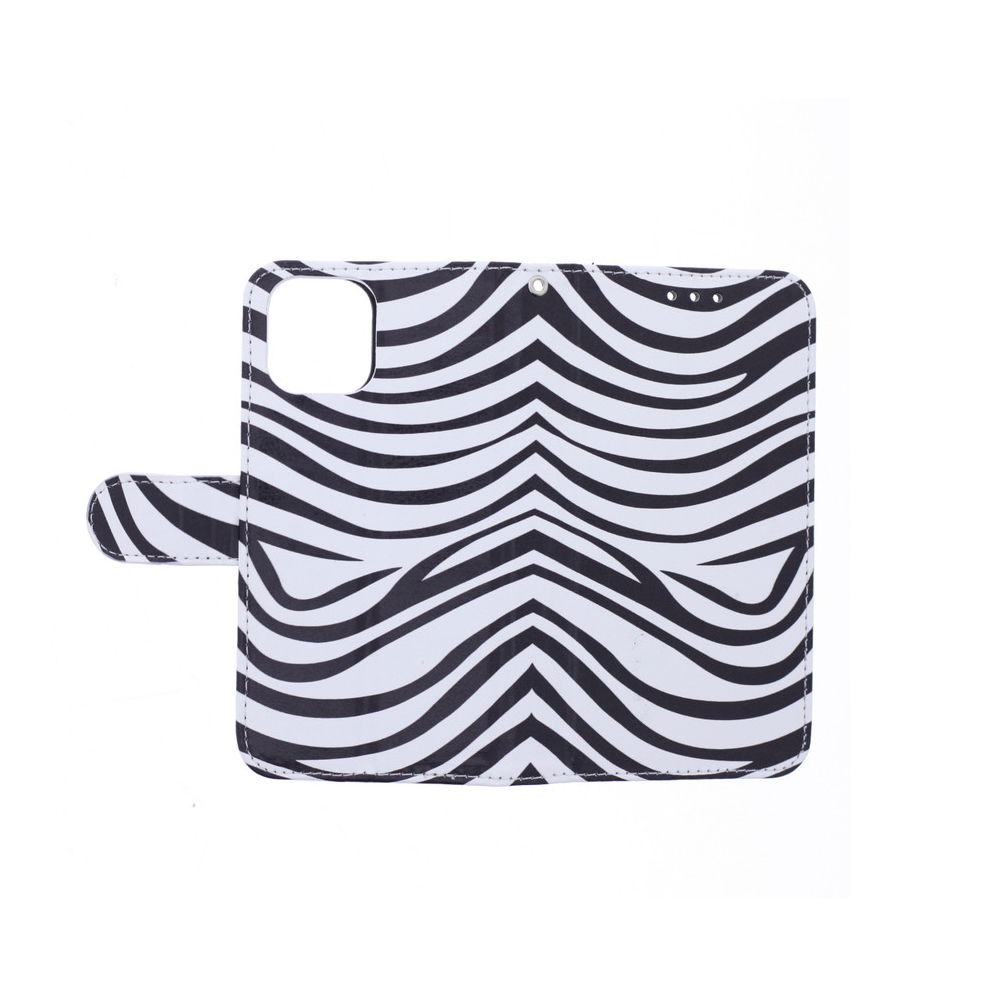 [ Portemonnee-ontwerp ] De Zebraprint bookcase beschikt ook over kaartvakken, waarbij u uw belangrijke kaarten in kunt plaatsen. Portemonnee en telefoonhoesje in 1.