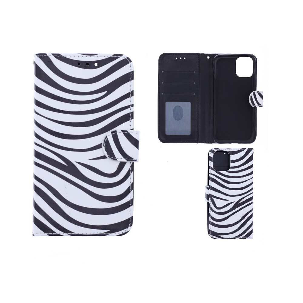 [ Portemonnee-ontwerp ] De Zebraprint bookcase beschikt ook over kaartvakken, waarbij u uw belangrijke kaarten in kunt plaatsen. Portemonnee en telefoonhoesje in 1.