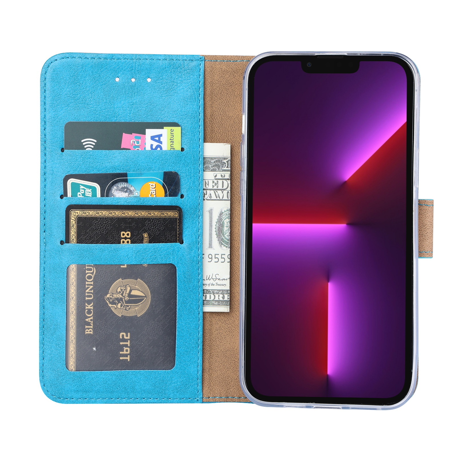 [ Portemonnee-ontwerp ] De Blauw gekleurde bookcase beschikt ook over kaartvakken, waarbij u uw belangrijke kaarten in kunt plaatsen. Portemonnee en telefoonhoesje in 1.