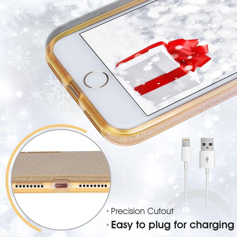 Hoesje geschikt voor Apple iPhone 7/8 Plus – Glitter hoes – Siliconen hoesje – Kunststof – Soft cover – Goud