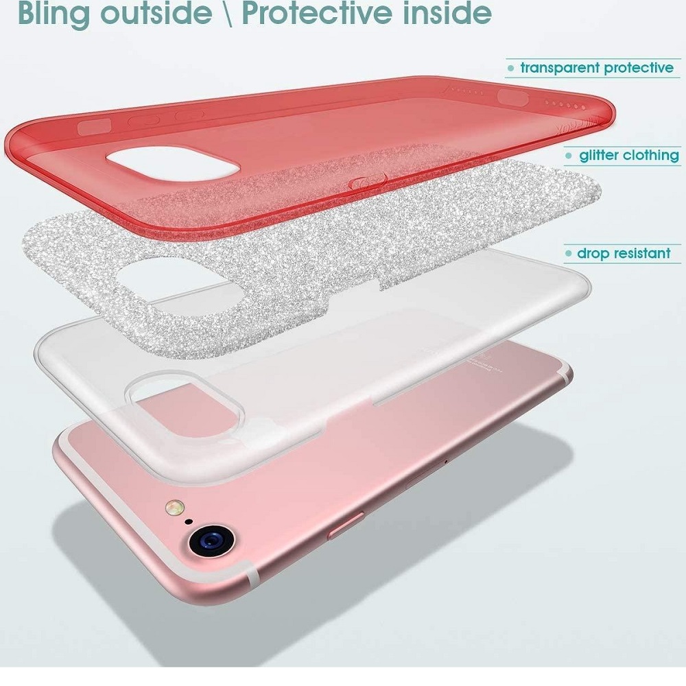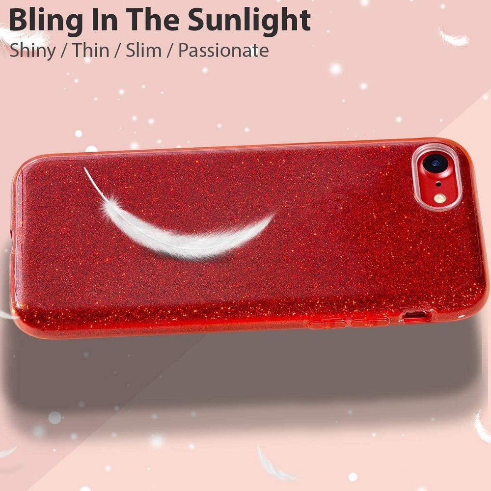 Hoesje geschikt voor Apple iPhone 7 Plus & 8 plus – Glitter hoes – Silicone case – Kunststof – Soft cover – Rood