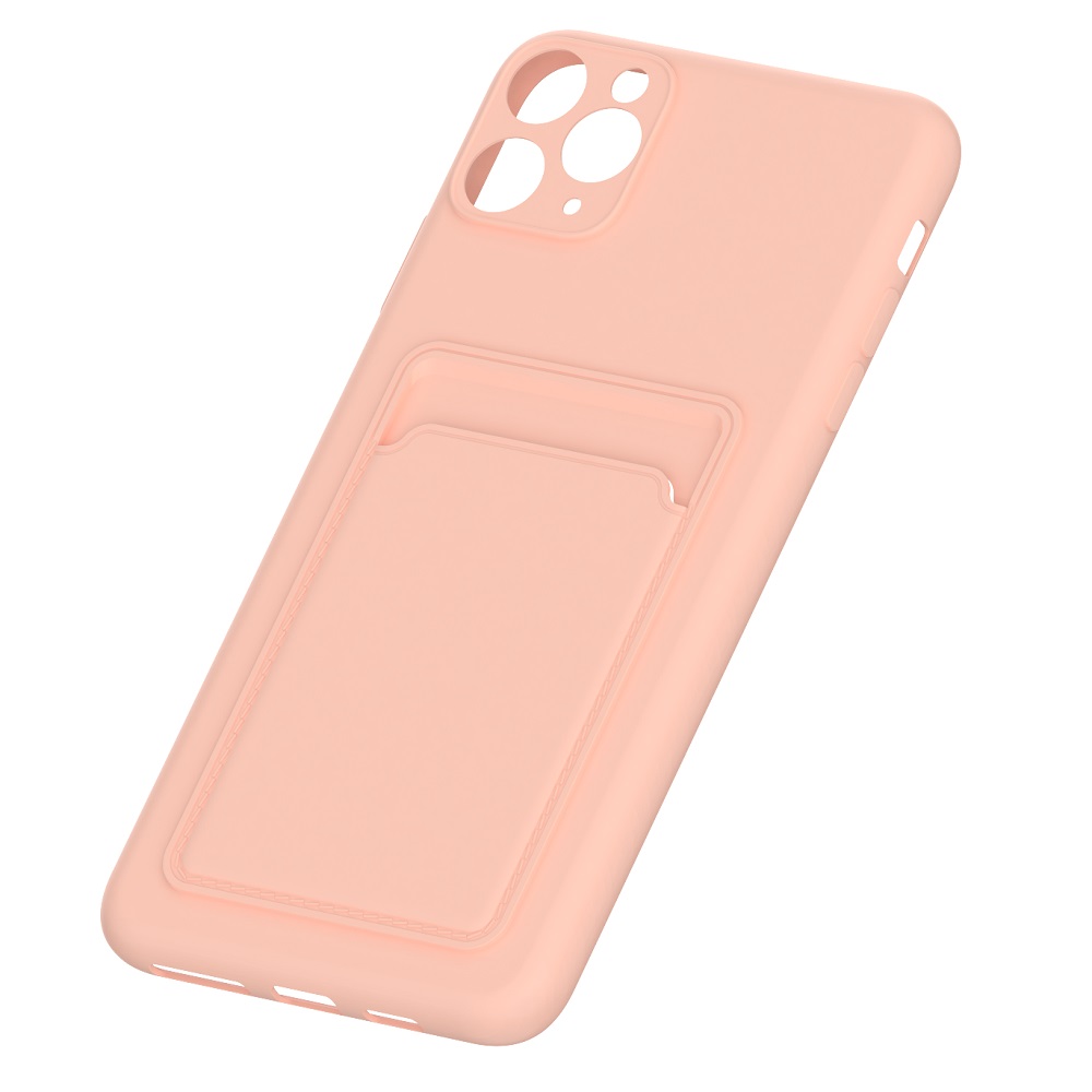 Hoesje geschikt voor iPhone 12 Pro – Siliconen hoesje – Licht Roze – Pasjeshouder