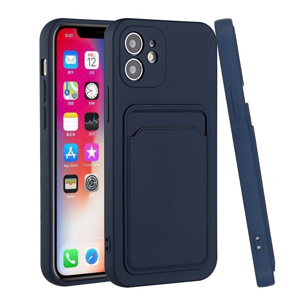 Hoesje geschikt voor iPhone 12 – Siliconen hoesje – Blauw – Pasjeshouder