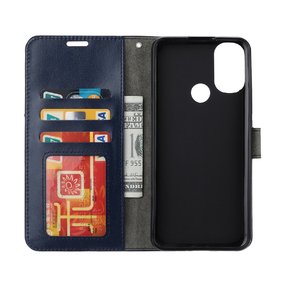 [ Portemonnee-ontwerp ] De Blauw gekleurde bookcase beschikt ook over kaartvakken, waarbij u uw belangrijke kaarten in kunt plaatsen. Portemonnee en telefoonhoesje in 1.