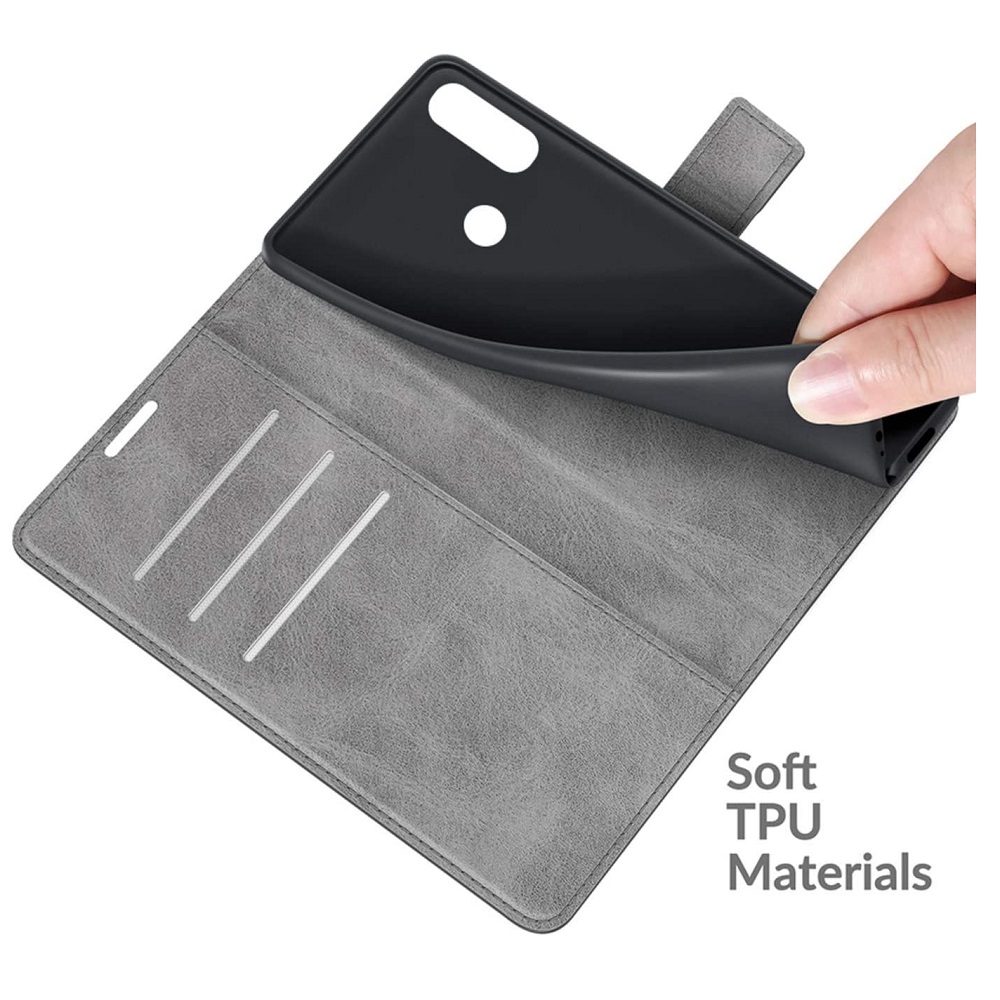 [ Portemonnee-ontwerp ] De Grijs gekleurde bookcase beschikt ook over kaartvakken, waarbij u uw belangrijke kaarten in kunt plaatsen. Portemonnee en telefoonhoesje in 1.