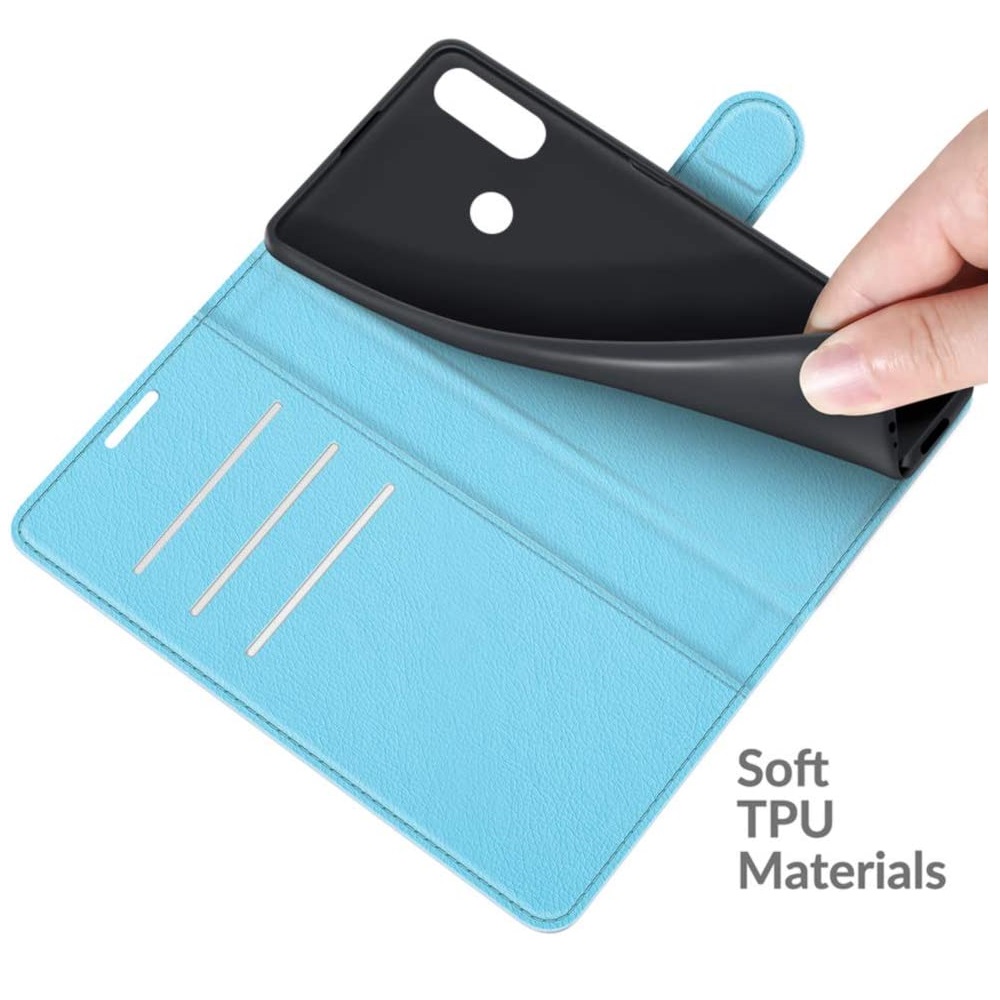 [ Portemonnee-ontwerp ] De Turquoise gekleurde bookcase beschikt ook over kaartvakken, waarbij u uw belangrijke kaarten in kunt plaatsen. Portemonnee en telefoonhoesje in 1.