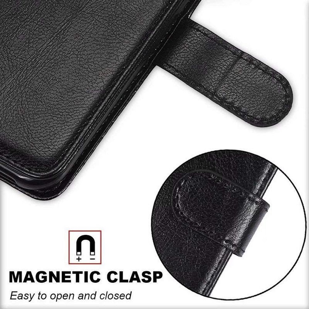 [ Magnetische systeem ] De magnetische sluiting houdt uw telefoon en uw kaarten veilig en zorgt ervoor dat de bookcase zich automatisch sluit na gebruik.