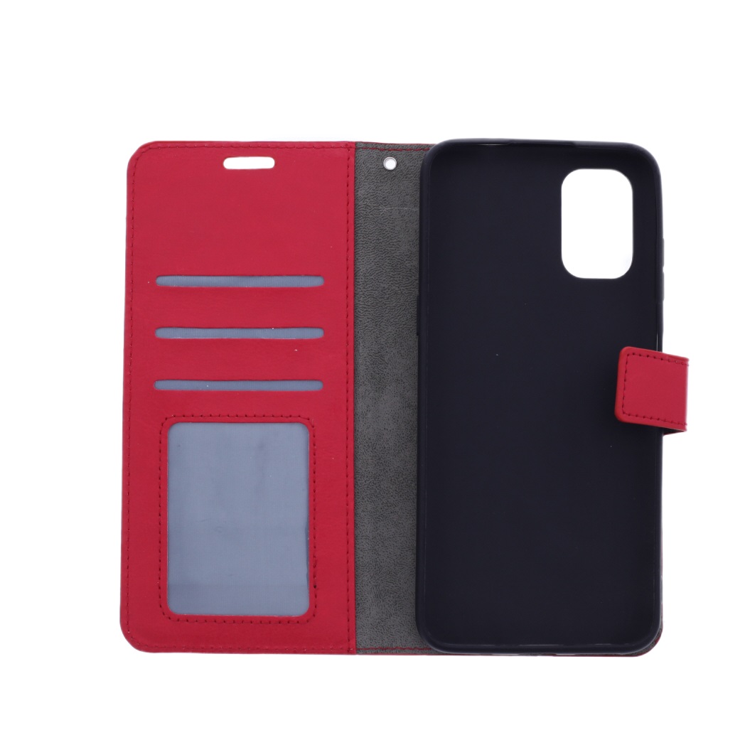 [ Portemonnee-ontwerp ] De Rood gekleurde bookcase beschikt ook over kaartvakken, waarbij u uw belangrijke kaarten in kunt plaatsen. Portemonnee en telefoonhoesje in 1.