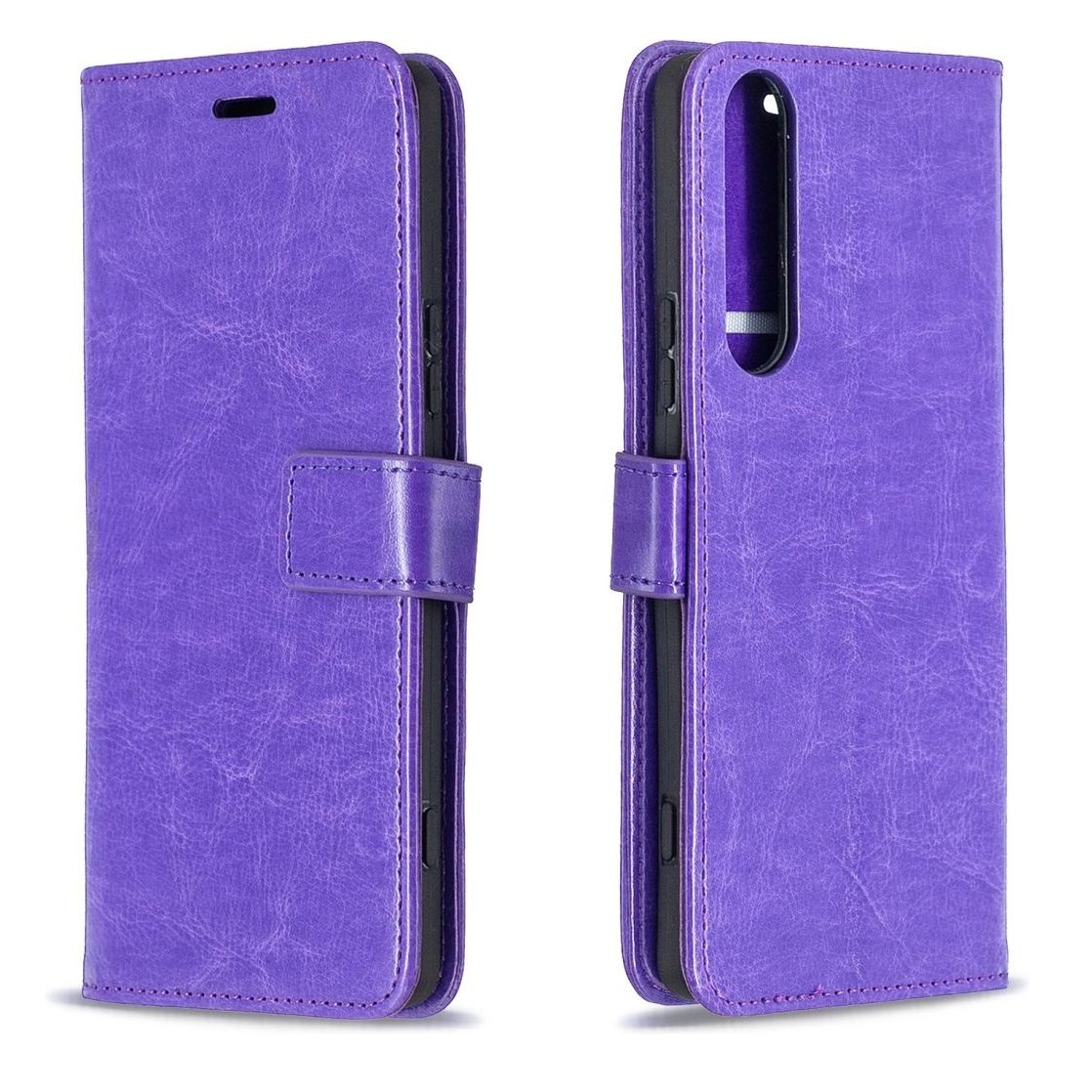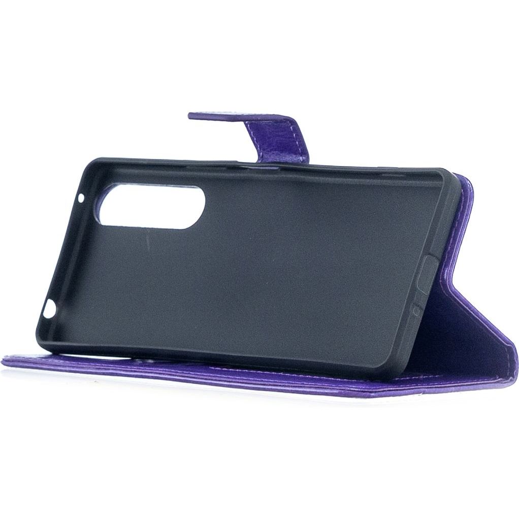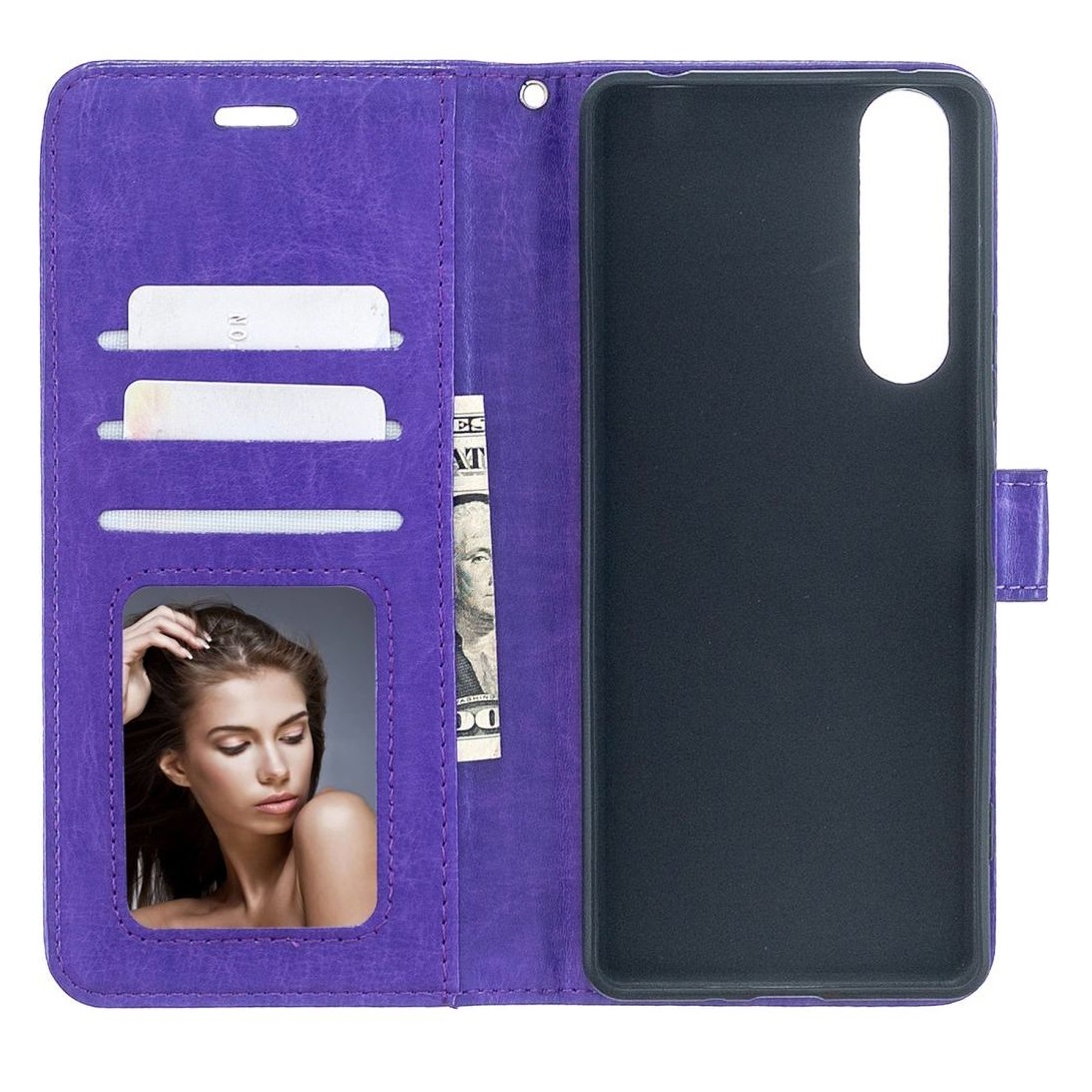 [ Portemonnee-ontwerp ] De Paars gekleurde bookcase beschikt ook over kaartvakken, waarbij u uw belangrijke kaarten in kunt plaatsen. Portemonnee en telefoonhoesje in 1.