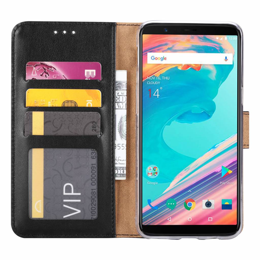 Hoesje geschikt voor OnePlus 5 – Boekhoesje met kaartvakken – Zwart
