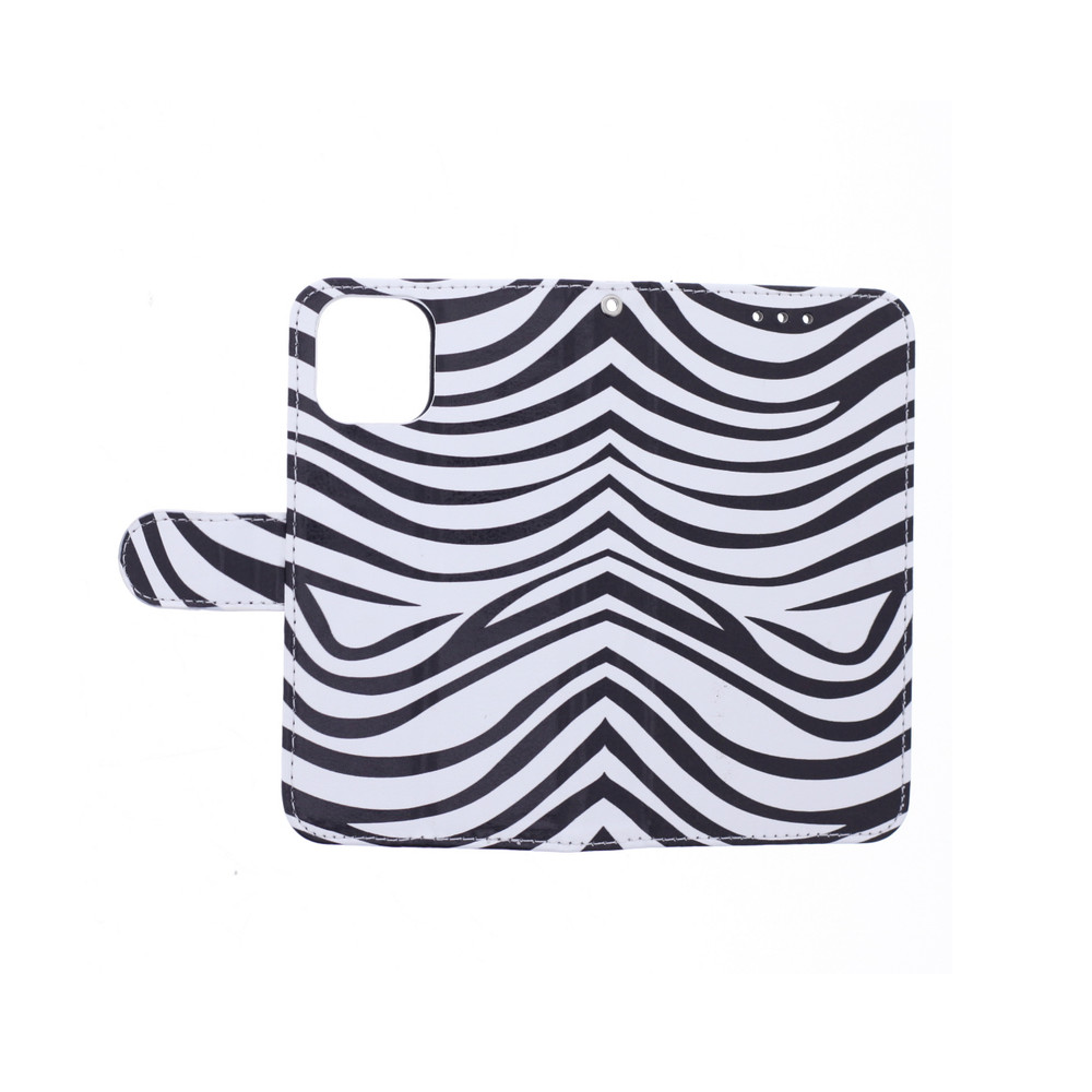 [ Portemonnee-ontwerp ] De Zebraprint bookcase beschikt ook over kaartvakken, waarbij u uw belangrijke kaarten in kunt plaatsen. Portemonnee en telefoonhoesje in 1.