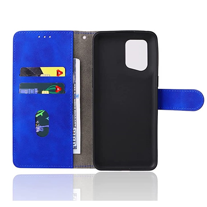 [ Portemonnee-ontwerp ] De Blauw gekleurde bookcase beschikt ook over kaartvakken, waarbij u uw belangrijke kaarten in kunt plaatsen. Portemonnee en telefoonhoesje in 1.