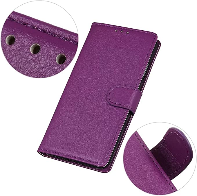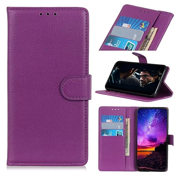 [ Portemonnee-ontwerp ] De Paars gekleurde bookcase beschikt ook over kaartvakken, waarbij u uw belangrijke kaarten in kunt plaatsen. Portemonnee en telefoonhoesje in 1.