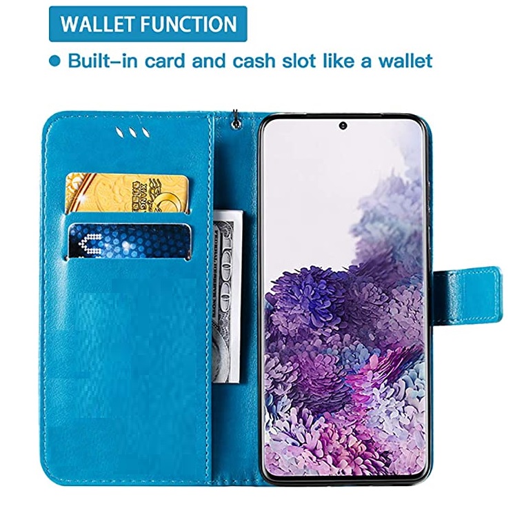 [ Portemonnee-ontwerp ] De Turquoise gekleurde bookcase beschikt ook over kaartvakken, waarbij u uw belangrijke kaarten in kunt plaatsen. Portemonnee en telefoonhoesje in 1.