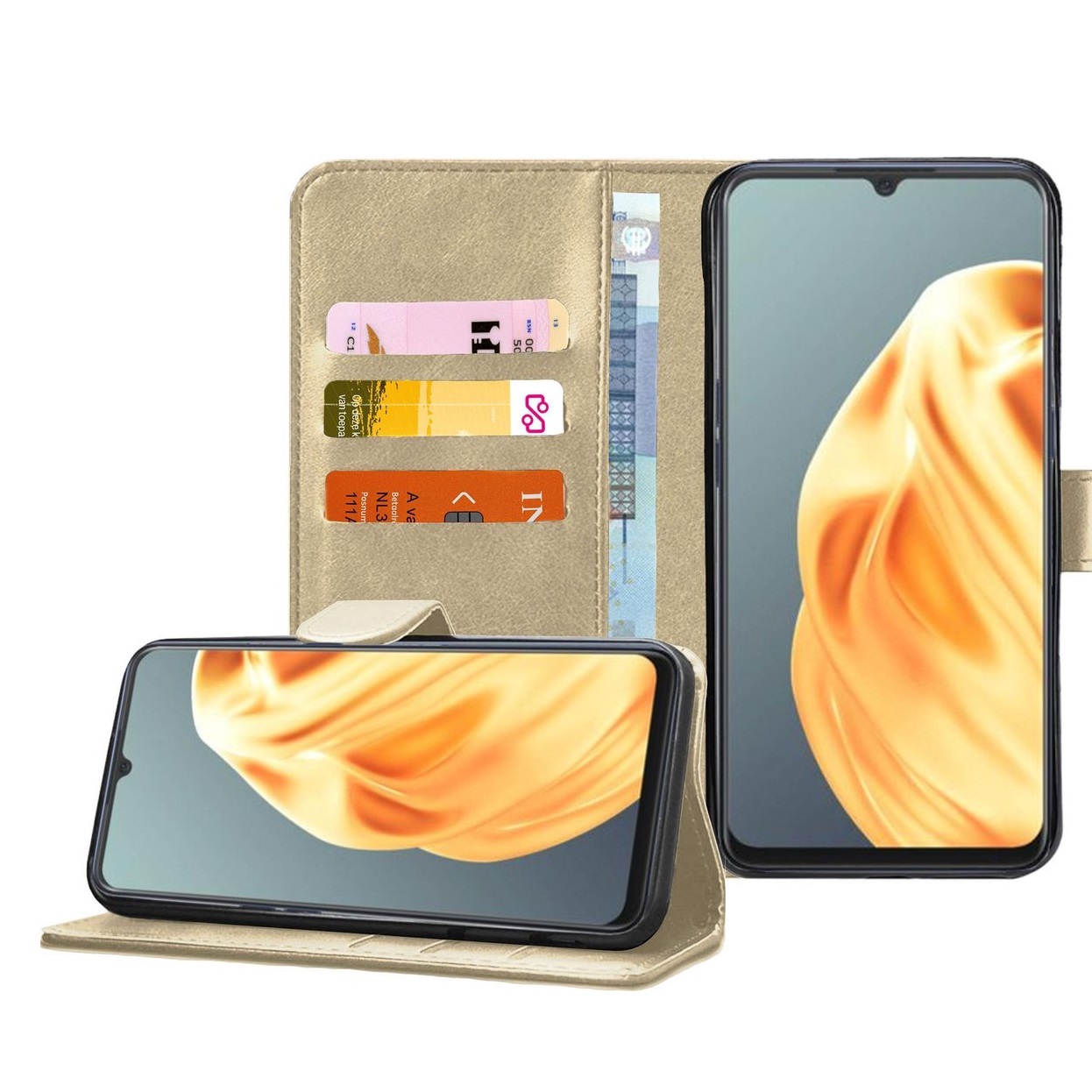 Hoesje geschikt voor Oppo Reno 5 – Boekhoesje met kaartvakken – Goud