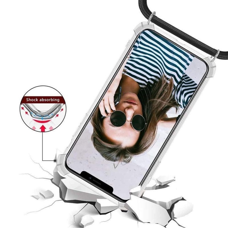Hoesje geschikt voor Samsung Galaxy A12 5G met koord – draagriem – nek – kettinghoesje – Antishock – Transparant