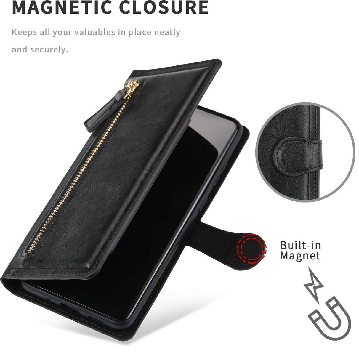 Hoesje geschikt voor Samsung Galaxy A32 4G – Boekhoesje – Zwart – Vintage portemonne hoes met ritssluiting