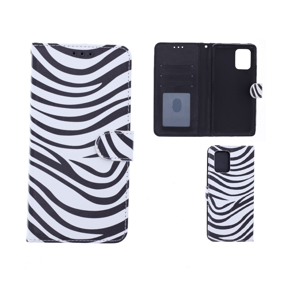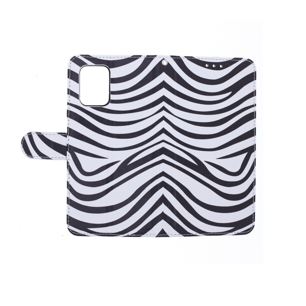 [ Portemonnee-ontwerp ] De Zebraprint bookcase beschikt ook over kaartvakken, waarbij u uw belangrijke kaarten in kunt plaatsen. Portemonnee en telefoonhoesje in 1.
