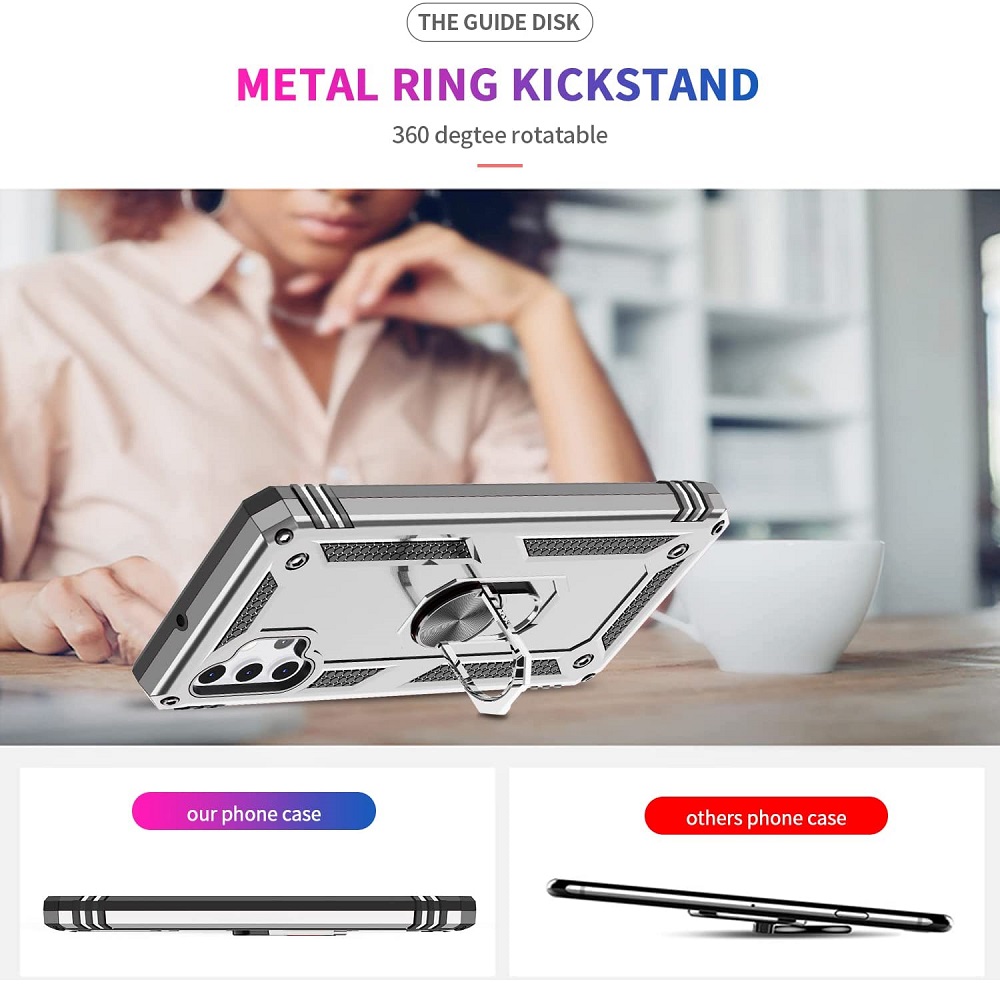 Hoesje geschikt voor Samsung Galaxy A32 4G – Schokbestendig – Hardcase- Ring Armor – Zilver