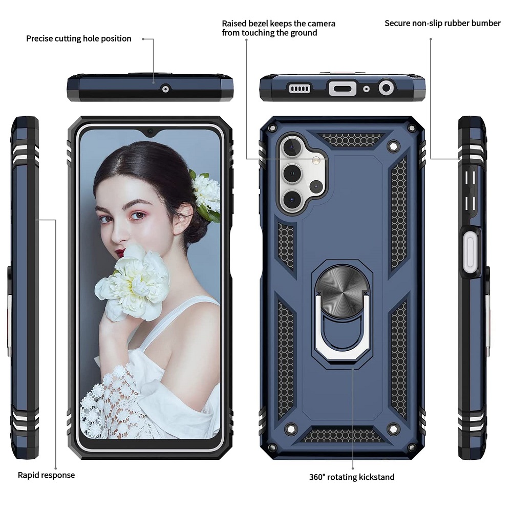 Hoesje geschikt voor Samsung Galaxy A32 5G – Schokbestendig – Hardcase- Ring Armor – Blauw