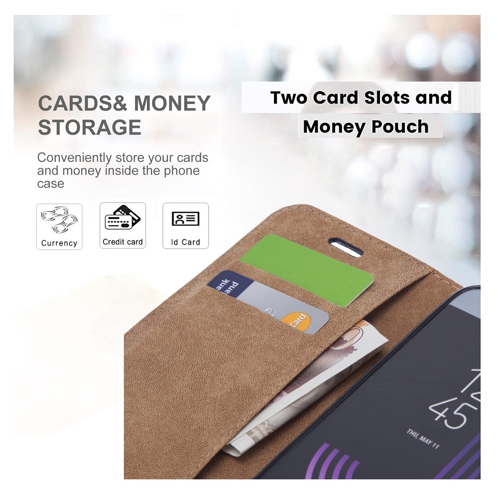 [ Speciaal geschikt ] LuxeBass bookcase is speciaal ontworpen voor uw telefoon, de nauwkeurige pasvorm van het leren hoesje biedt permanent gemakkelijke toegang tot alle poorten, knoppen en camera’s van uw telefoon.