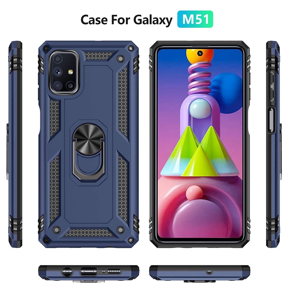 Hoesje geschikt voor Samsung Galaxy M51 – Schokbestendig – Hardcase- Ring Armor- Blauw