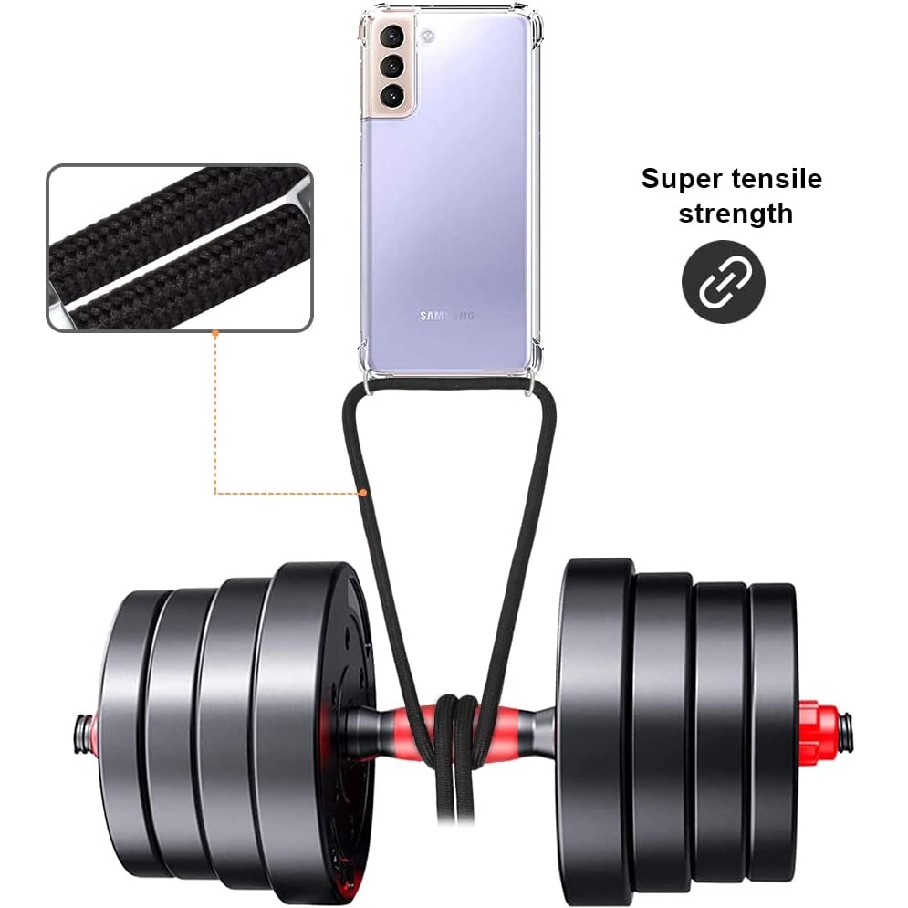 Hoesje geschikt voor Samsung Galaxy S21 5G met koord – draagriem – nek – kettinghoesje – Antishock – Transparant