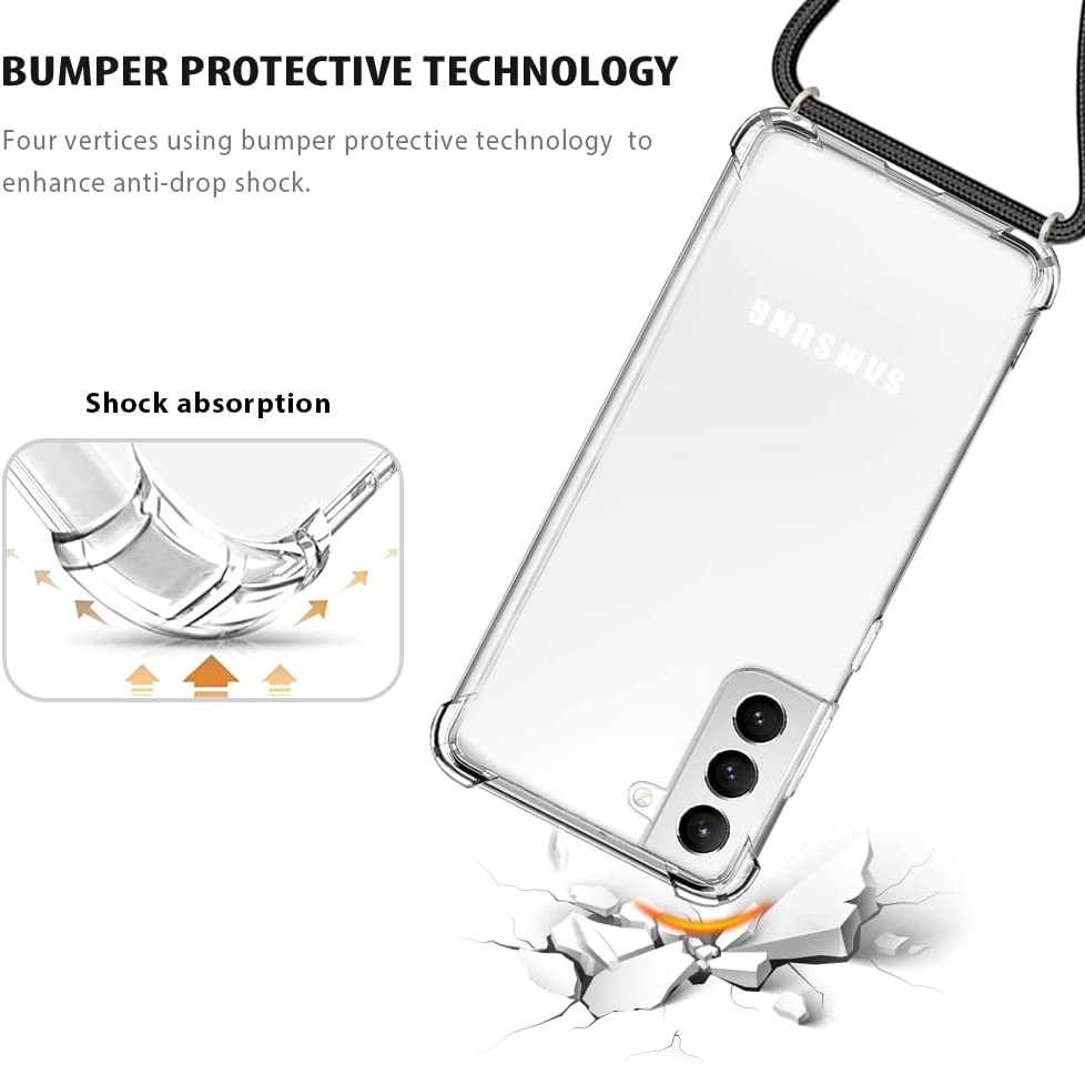 Hoesje geschikt voor Samsung Galaxy S22+ 5G met koord – draagriem – nek – kettinghoesje – Antishock – Transparant