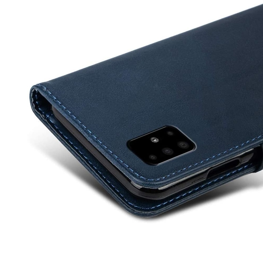 [ Portemonnee-ontwerp ] De Blauw gekleurde bookcase beschikt ook over kaartvakken, waarbij u uw belangrijke kaarten in kunt plaatsen. Portemonnee en telefoonhoesje in 1.